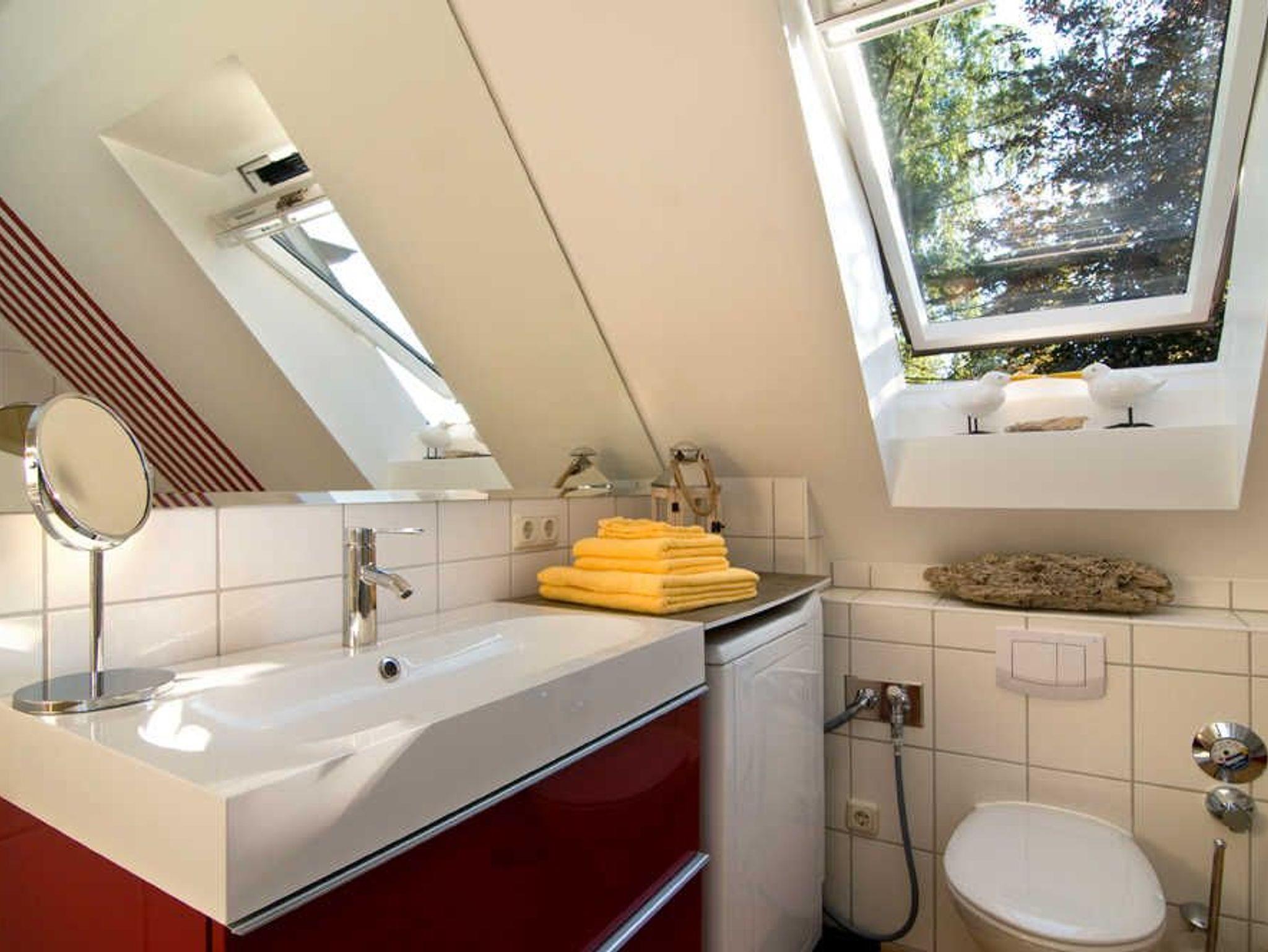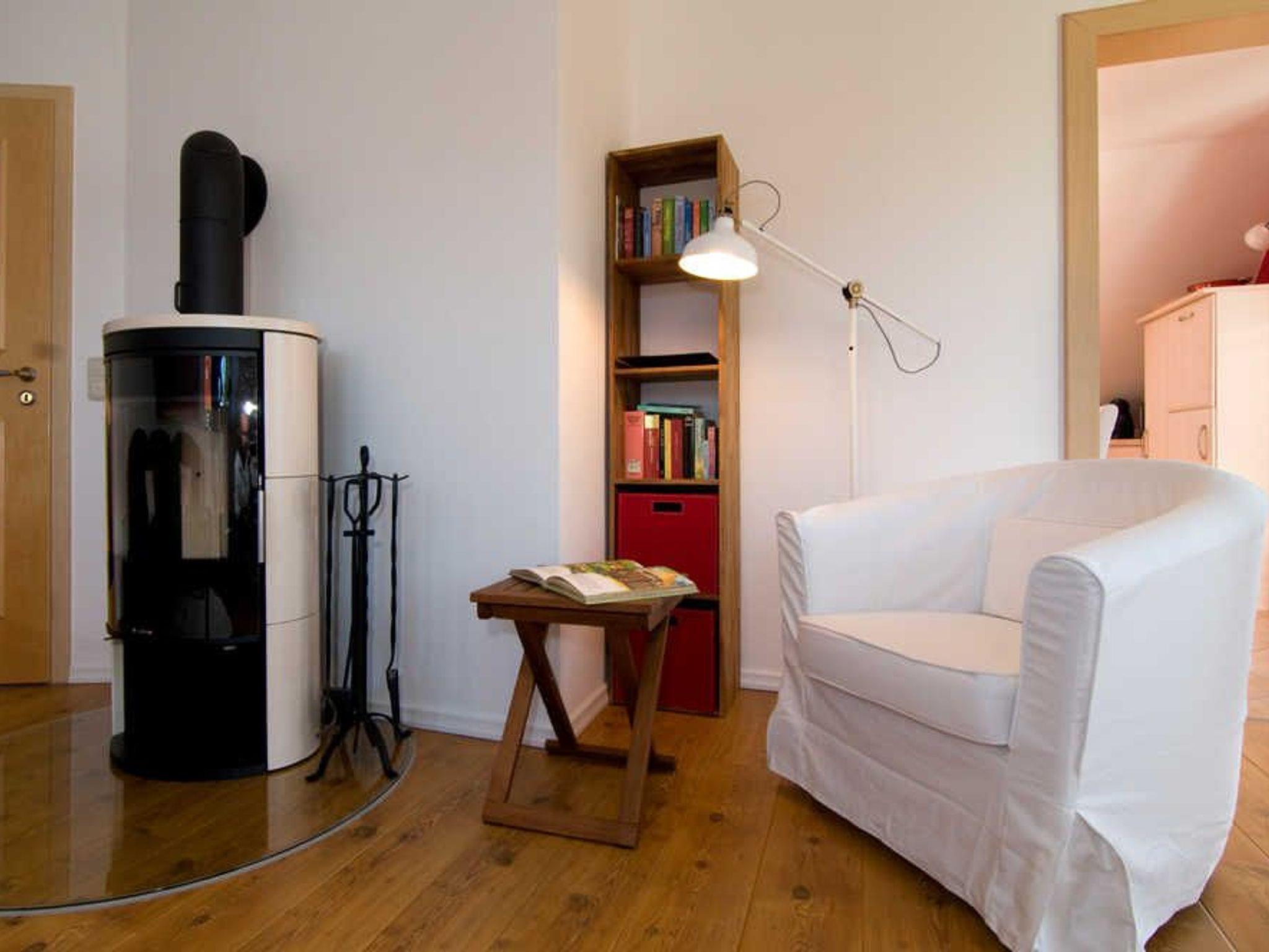 1 LED Flachbildschirm Sat - TV 138 cm, - 1 Heimkinoanlage mit Stereo CD - und Bluerayplayer Zur Wohnung im Obergeschoss gehören 1 Schlafzimmer mit einem Doppelbett sowie 1 Schlafzimmer mit 2 Einzelbetten (mit Aufbettung) eine komplett eingerichtete moderne Küche mit Kühlschrank ( inclusive ***Kältefach ), Backofen, Induktionsherd, Mikrowelle, Geschirrspüler und Essplatz für bis zu 6 Personen Außerdem: - Bad mit Dusche und Kinderbadewanne - Kaminofen - TV/Stereoanlage - kostenfreier Zugang zum Internet - Waschmaschine mit Trockner - Safe - große Dachterrasse mit Sitzgruppe, Grillplatz und Strandkorb - Münzsauna (20 min. ca. 2,00 Euro) - 2 PKW Stellplätze Bei Anreise bezogene Betten, ein Wäschepaket pro Person und kleiner Begrüssungsüberraschung. Wir haben bei der Gestaltung aller Räumlichkeiten großen Wert auf die Gestaltung, hochwertiger Ausstattung und Kinderfreundlichkeit gelegt.