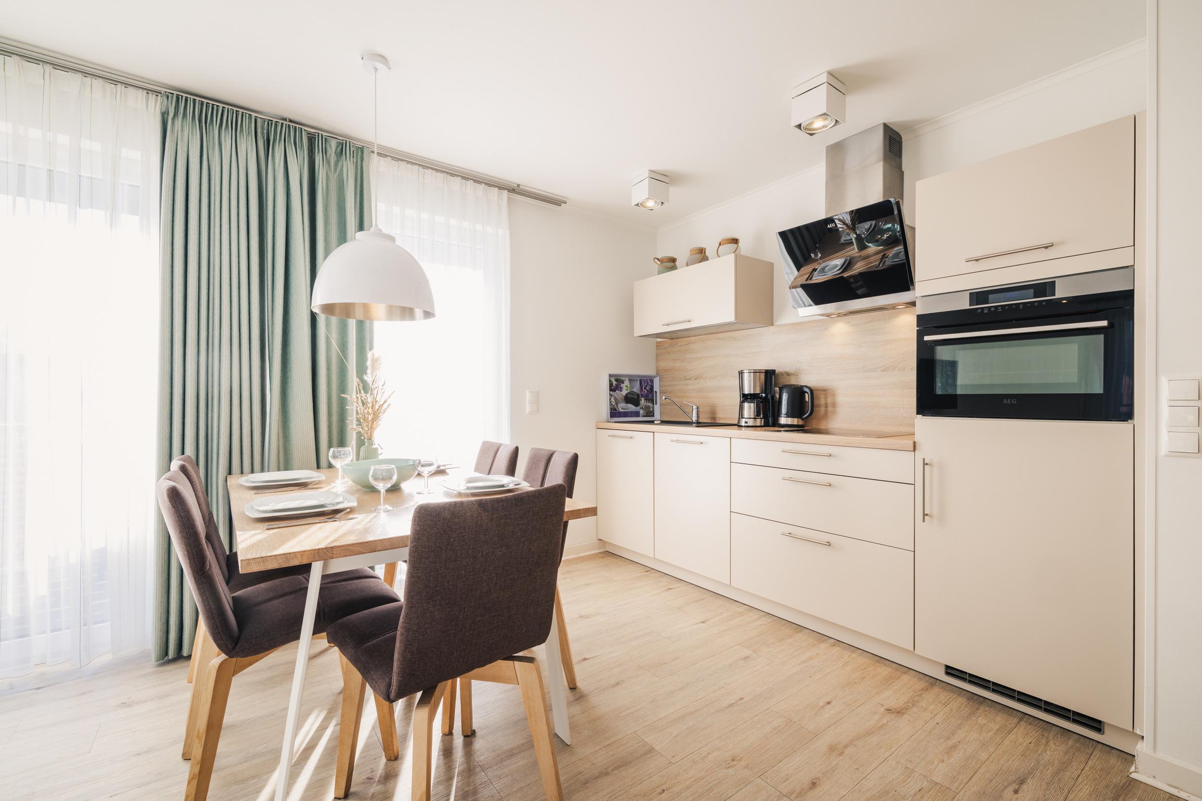 Die voll ausgestattete Küche bietet Ihnen mit Spülmaschine, Backofen, Cerankochfeld. Kaffeemaschine und alles, was Sie für eine unkomplizierte Selbstversorgung benötigen.