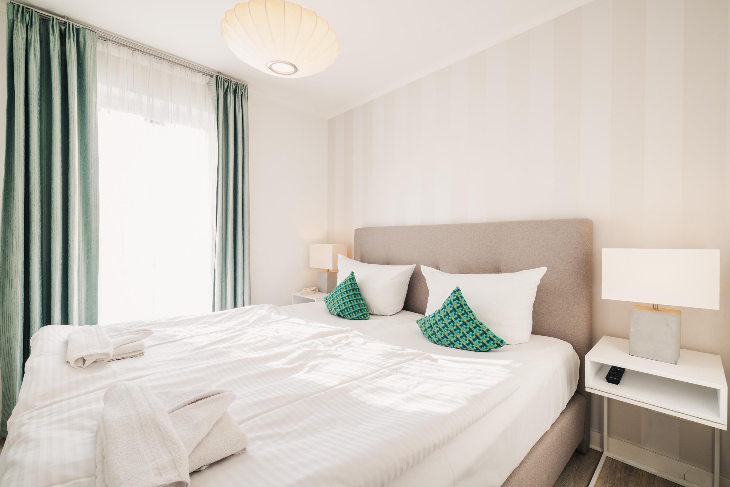 Die Wohnung verfügt über zwei separate Schlafzimmer, jeweils ausgestattet mit komfortablen Boxspring-Doppelbetten und TV. Der großzügige Wohnbereich mit großer Couch und Flat-TV lädt zu entspannten Stunden und gemütlichen Abenden ein.