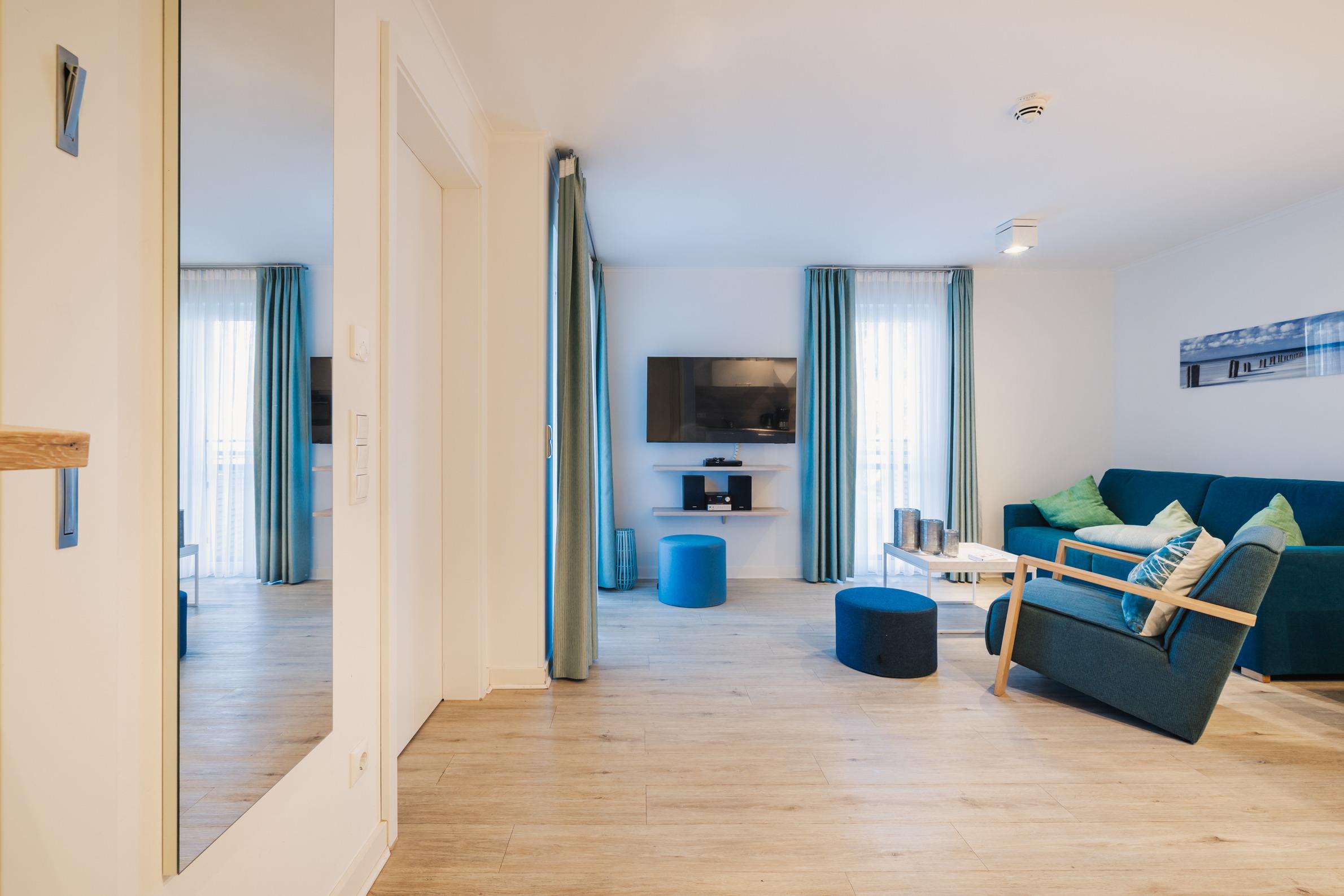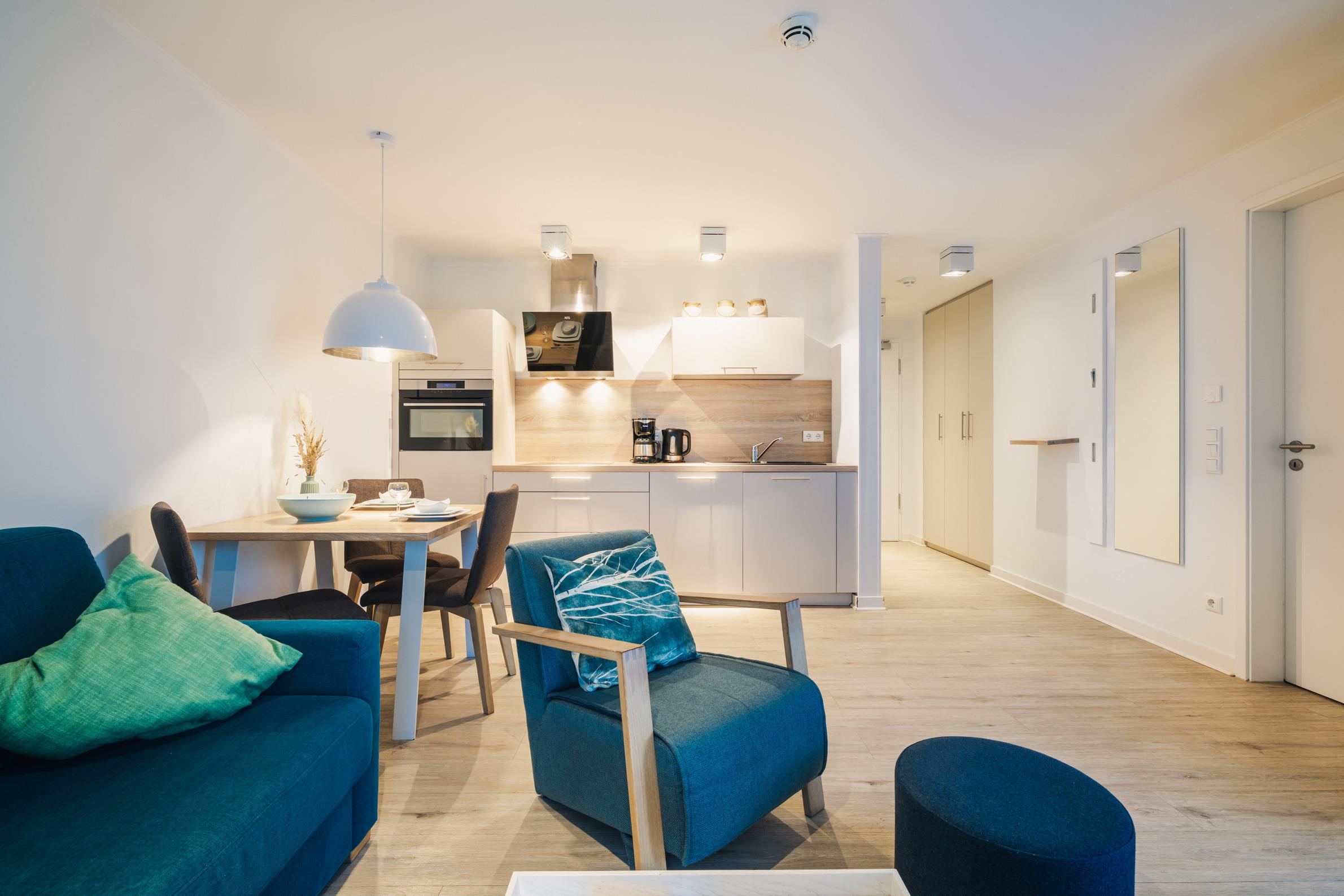 Einheitlich hochwertiger, maritimer Einrichtungsstil in allen Appartements