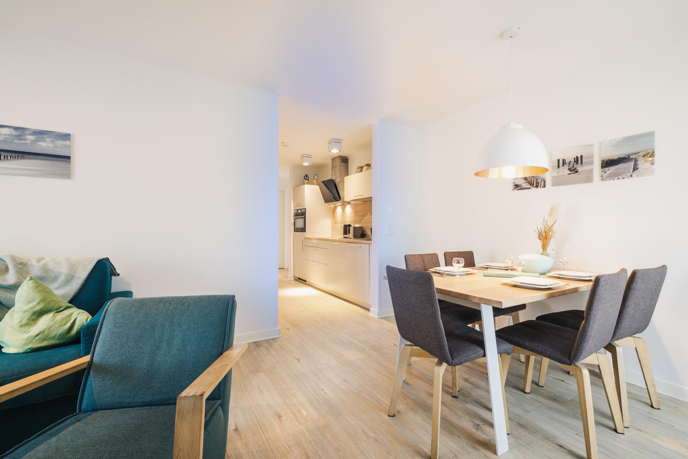 Diese moderne 3-Zimmer-Wohnung im Erdgeschoss bietet auf ca. 60 m² Wohnfläche reichlich Platz für Familien, Paare oder Freunde. Mit Schlafmöglichkeiten für bis zu sechs Personen, einer hochwertigen maritimen Ausstattung und einer angenehmen Raumaufteilung ist dieses Appartement die ideale Basis für erholsame Urlaubstage im Ostseebad Prerow.