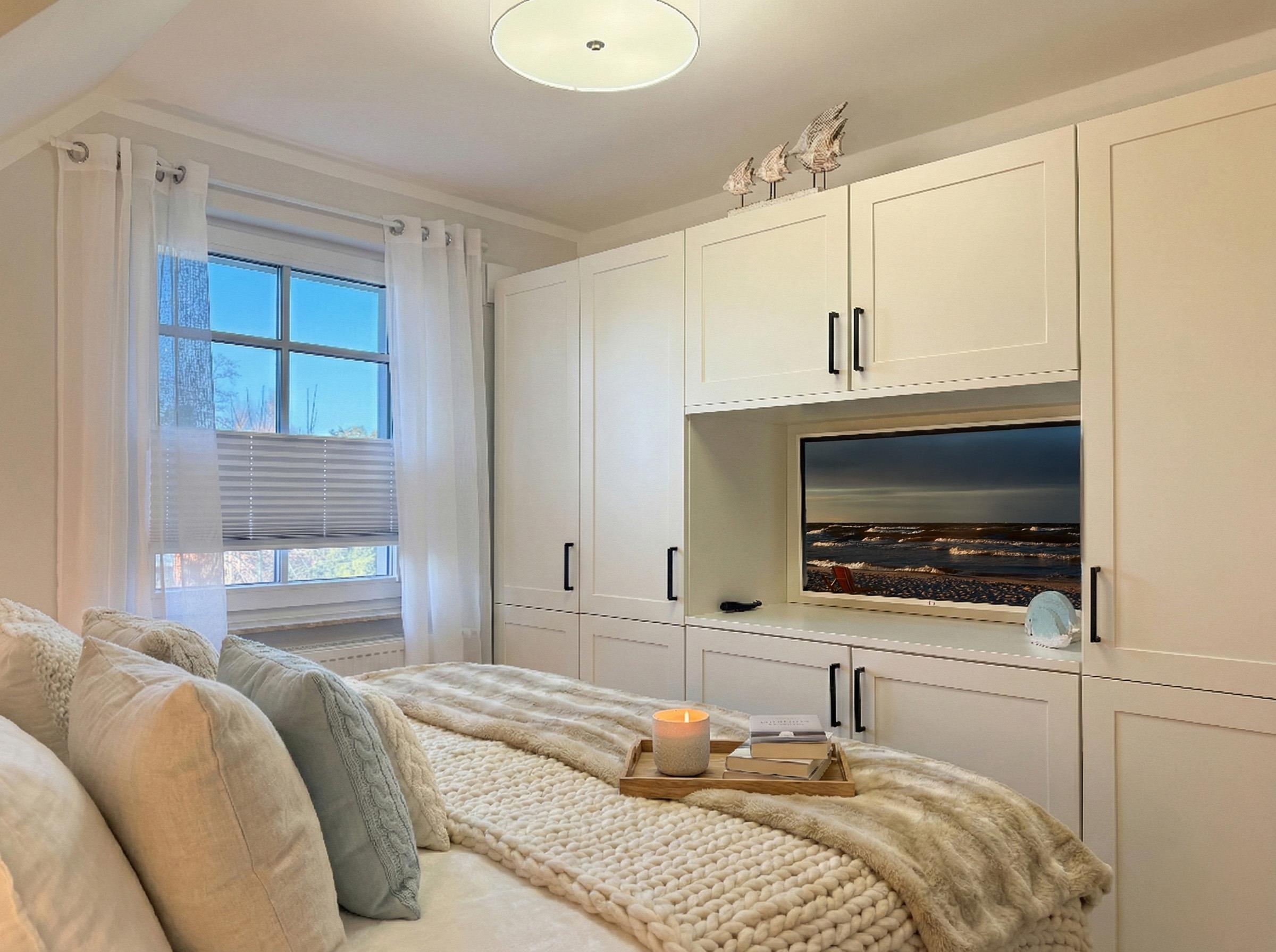 Schlafzimmer zum Träumen: Ausgestattet mit einem komfortablen Boxspringbett (1,80 x 2,00 m) und einem zusätzlichen Fernseher für maximalen Komfort.