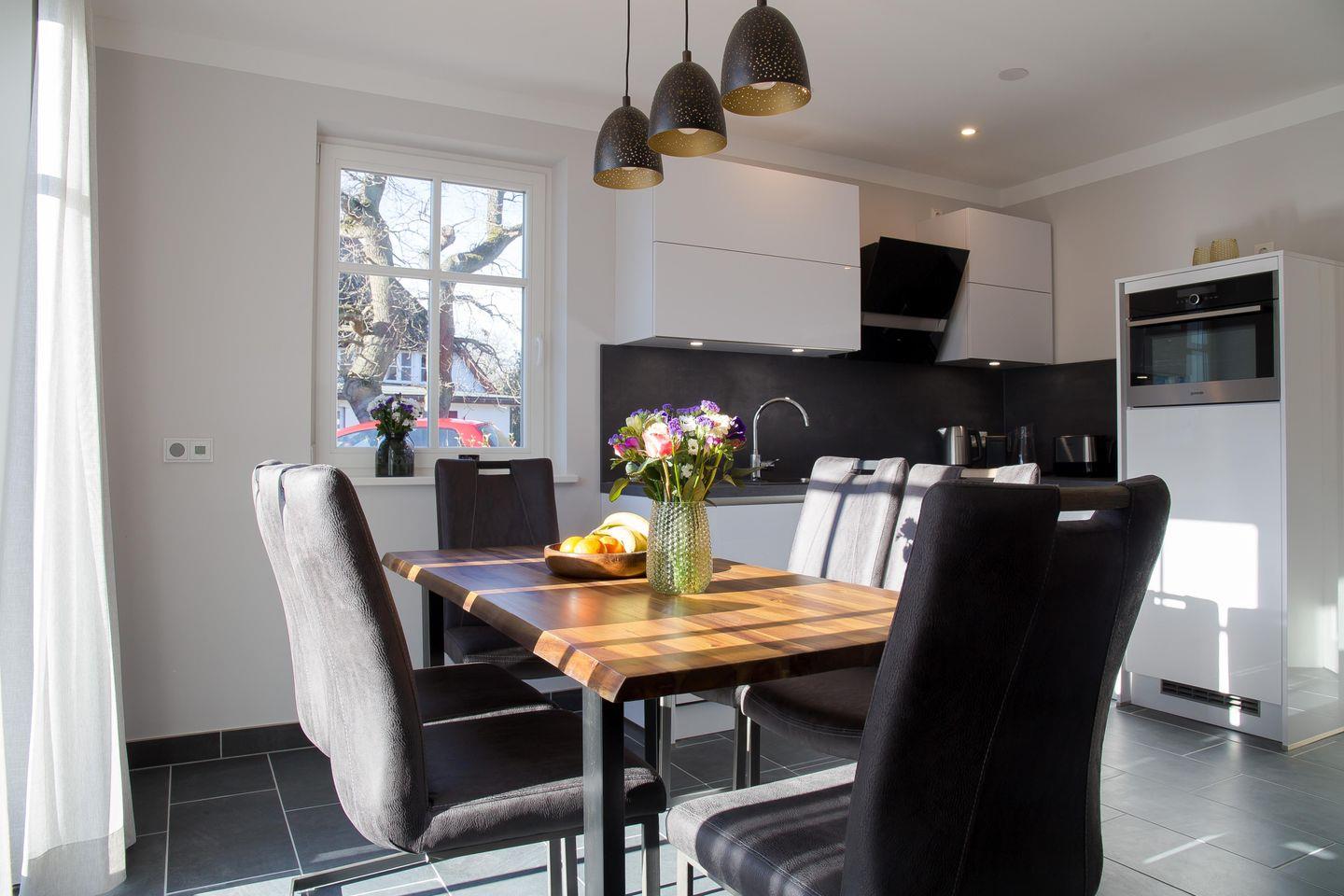 Das großzügige Urlaubsquartier bietet dir auf zwei Etagen alles, was du für entspannte Tage brauchst und noch ein bisschen mehr. Im Erdgeschoss wartet ein offener Wohn- und Küchenbereich, der sofort Urlaubslaune macht: Kuschele dich auf das Sofa am knisternden Kamin, koche gemeinsam in der voll ausgestatteten Küche oder genieße einfach die Zeit mit deinen Liebsten. Ebenfalls im Erdgeschoss: ein gemütliches Schlafzimmer, ein modernes Badezimmer und ein praktischer Hauswirtschaftsraum mit Waschmaschine – super, wenn du länger bleibst oder mit Kids reist.