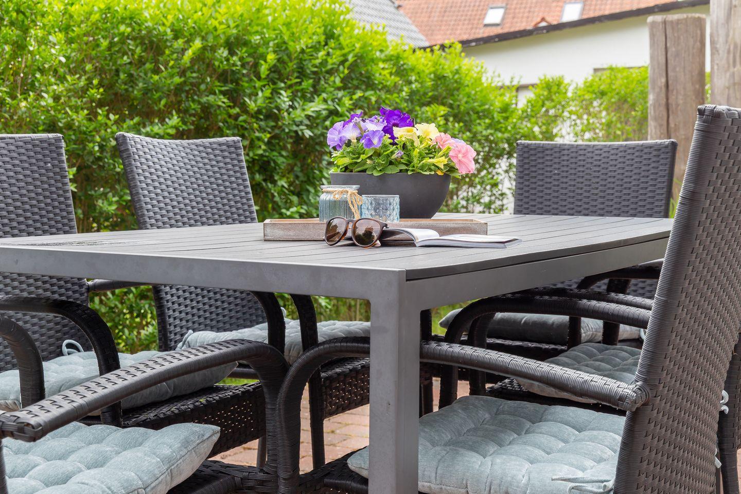 Der Außenbereich begeistert mit einer sonnigen Terrasse: perfekt für lange Frühstücke, entspannte Nachmittage oder gesellige Grillabende. Ein Grill steht natürlich bereit. Autos wie Fahrräder sind gut aufgehoben, denn die Stellplätze befinden sich direkt am Haus. Somit bist du jederzeit startklar für Touren entlang der Halbinsel oder durch Prerow, zum Strand oder in den Darßer Urwald.