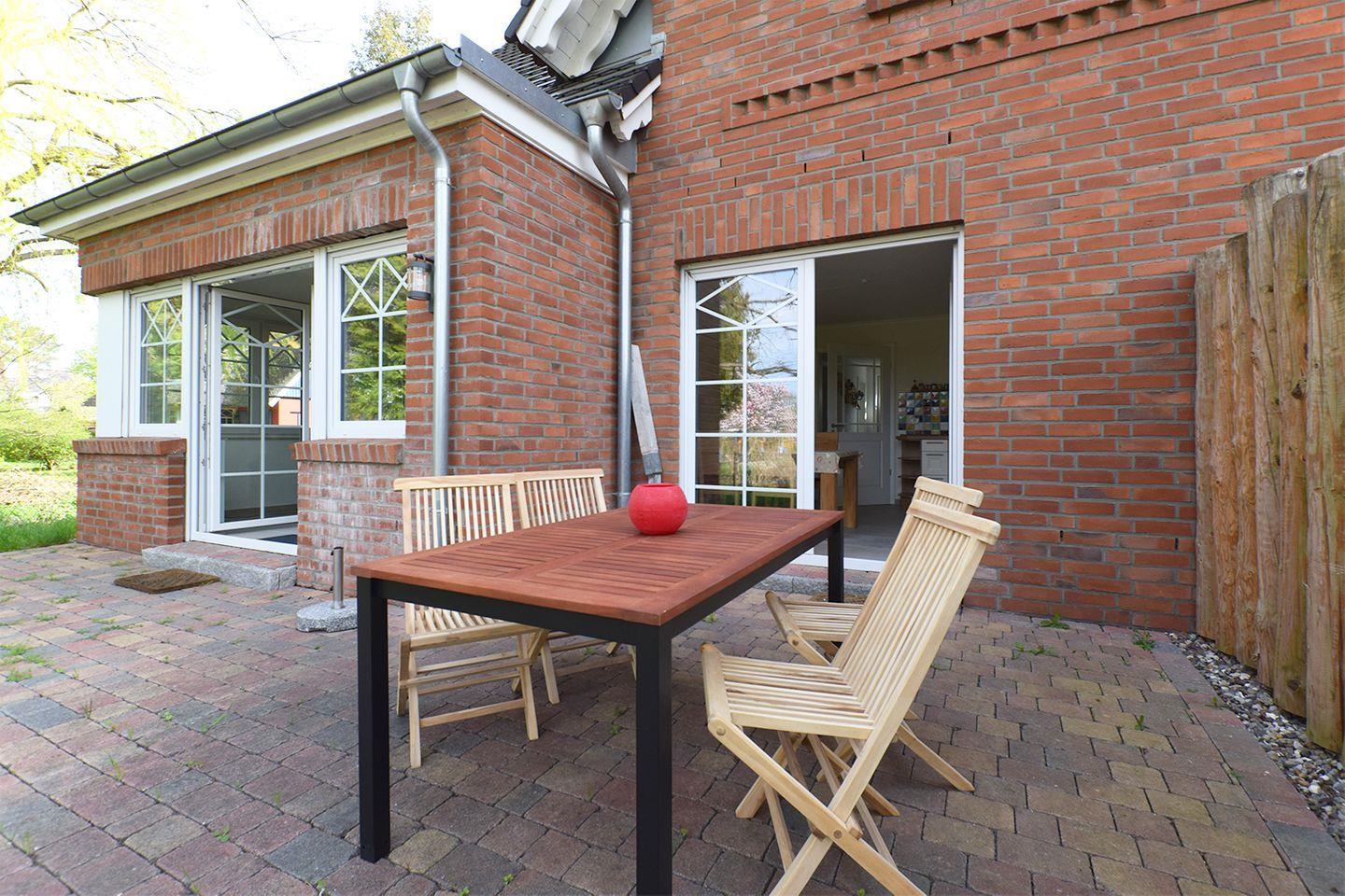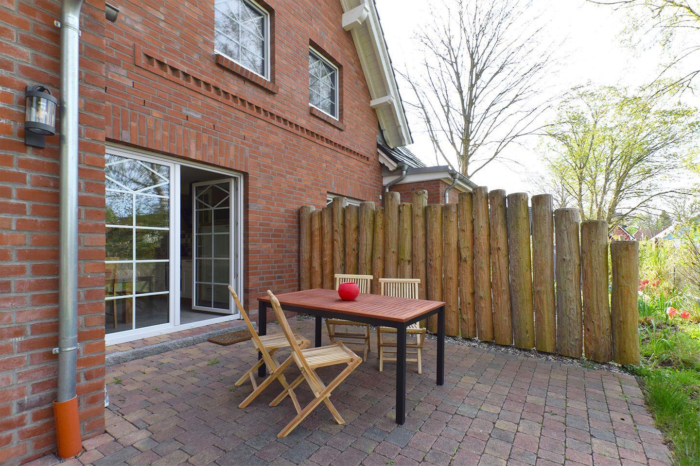 Die Terrasse mit Gartenmöbeln und Sonnenschirm bietet einen schönen Blick und lädt zum Verweilen im Freien ein. Zwei private Parkplätze direkt am Haus ermöglichen eine bequeme Anreise mit dem eigenen Fahrzeug. Das Objekt ist ein Nichtraucherhaus; Haustiere sind hier nicht gestattet. Kinder sind willkommen, allerdings sind Jugendgruppen nicht erlaubt.