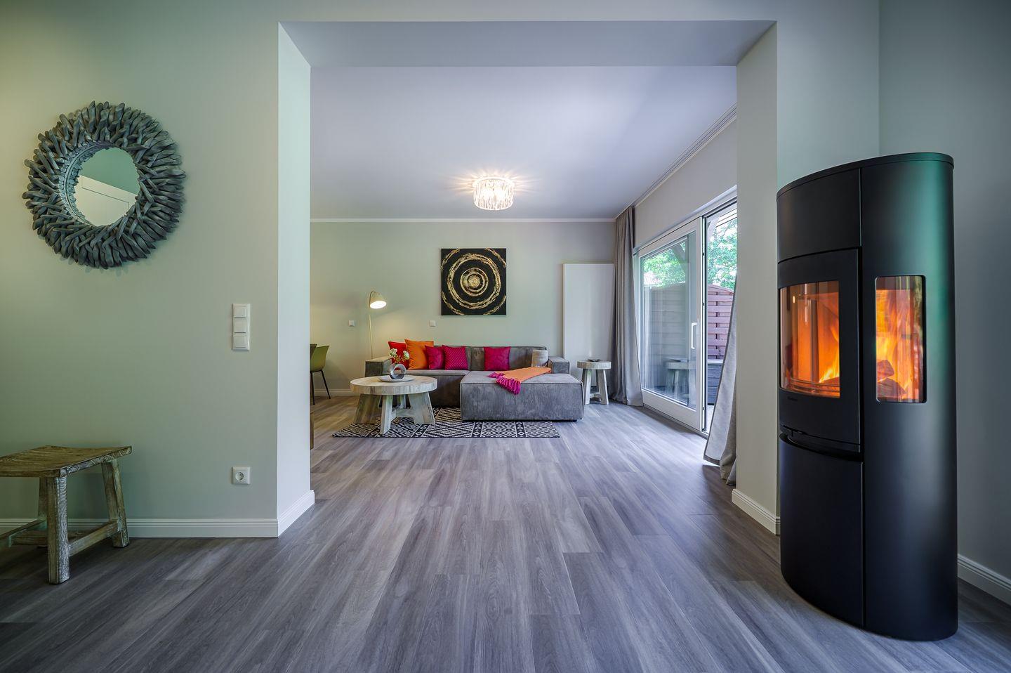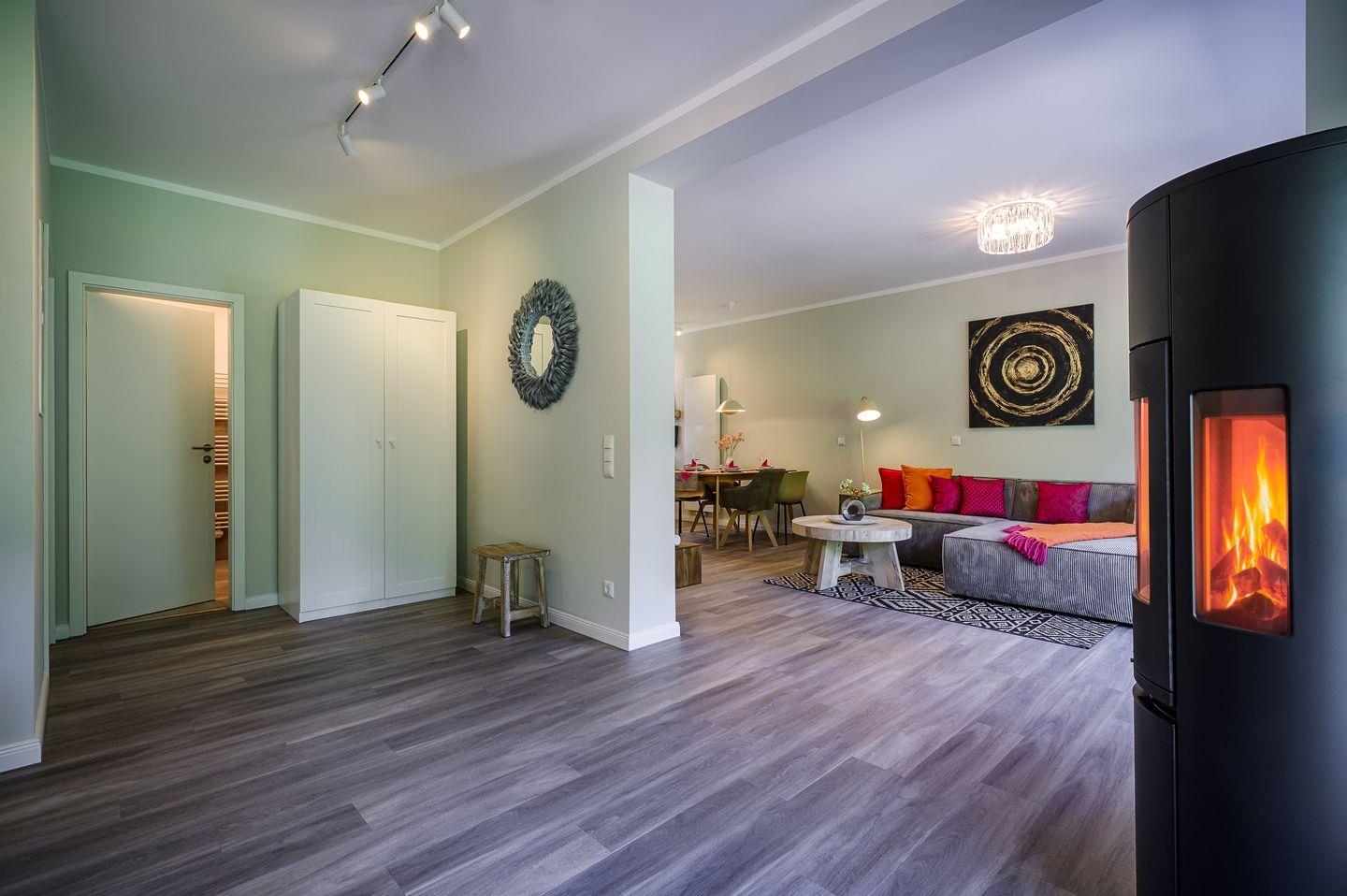 Wohnraum mit Sofa und Kamin ( Nutzung ab 2026 )