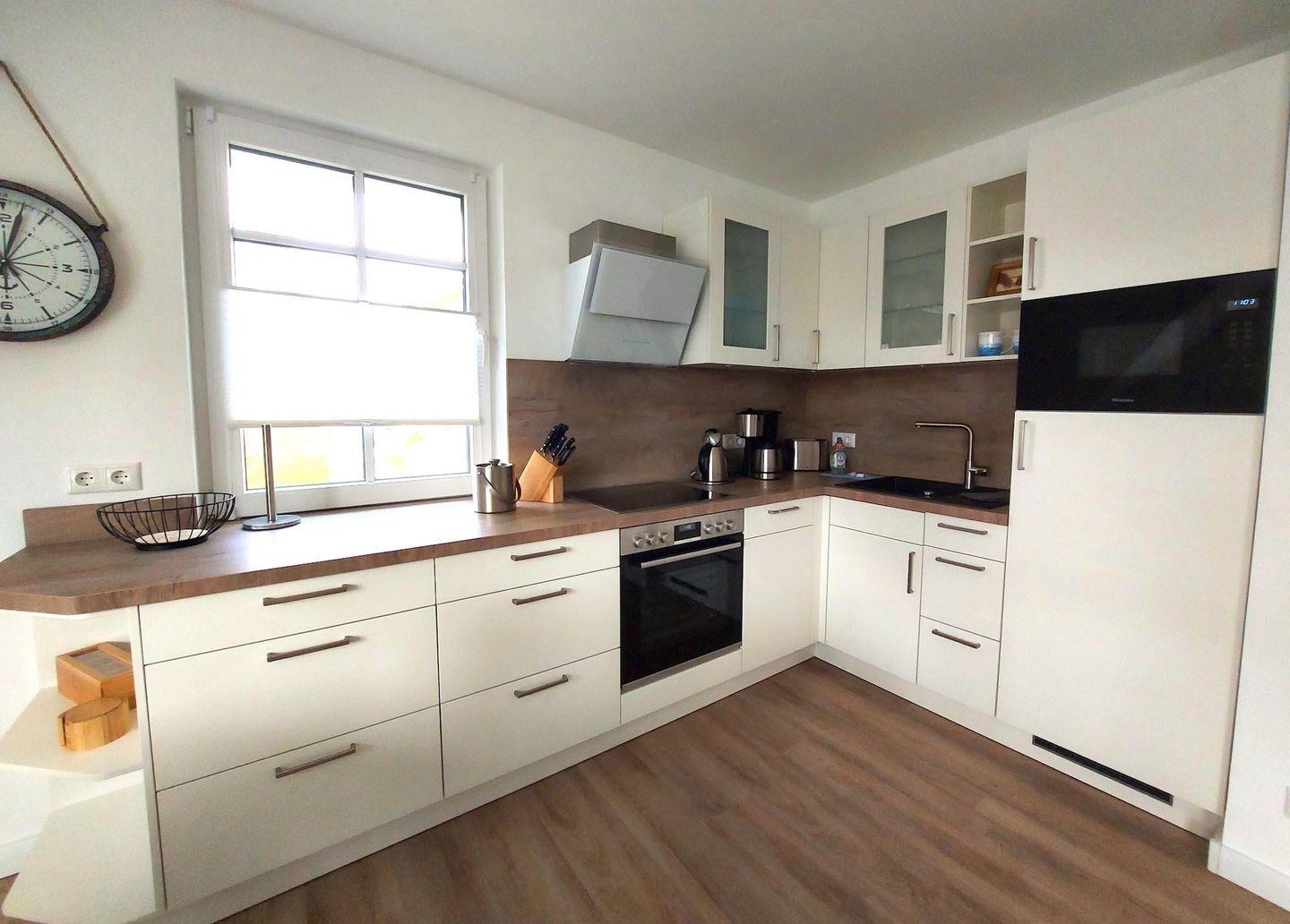 Sie verfügt über einen eleganten Wohnbereich mit einer offenen Küche und gemütlichem Essbereich. Die Küche ist hochwertig ausgestattet und lässt keine Wünsche offen.