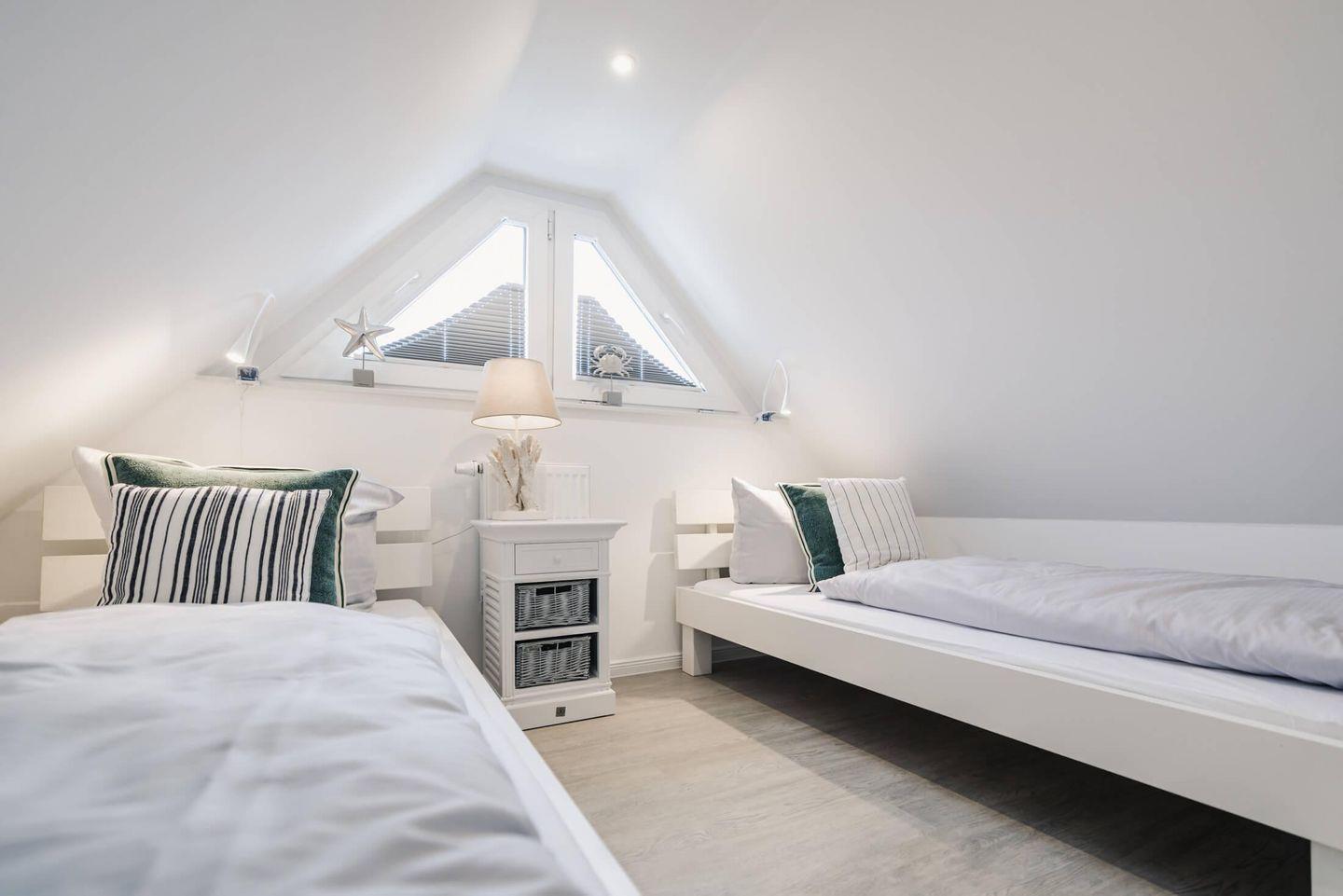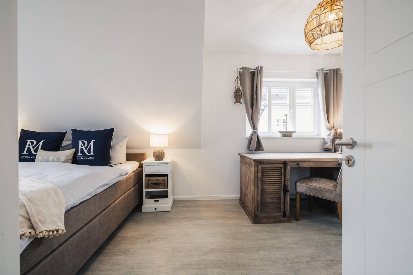 Komfortable Schlafzimmer: Drei Schlafzimmer, davon zwei mit hochwertigen Boxspringbetten für optimalen Schlafkomfort. Ein weiteres Schlafzimmer bietet ebenfalls gemütliche Betten.
