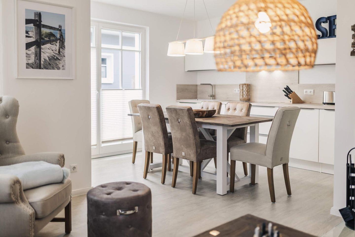 Das Haus Meerweh besticht durch seine gemütliche Atmosphäre und die hochwertige Ausstattung. Zwei der drei Schlafzimmer sind mit komfortablen Boxspringbetten ausgestattet, die für erholsame Nächte sorgen. Die voll ausgestattete Küche und der großzügige Wohn- und Essbereich laden zum Verweilen ein. Ein Kaminofen sorgt für wohlige Wärme an kühlen Tagen, und die hauseigene Sauna verspricht Entspannung pur.