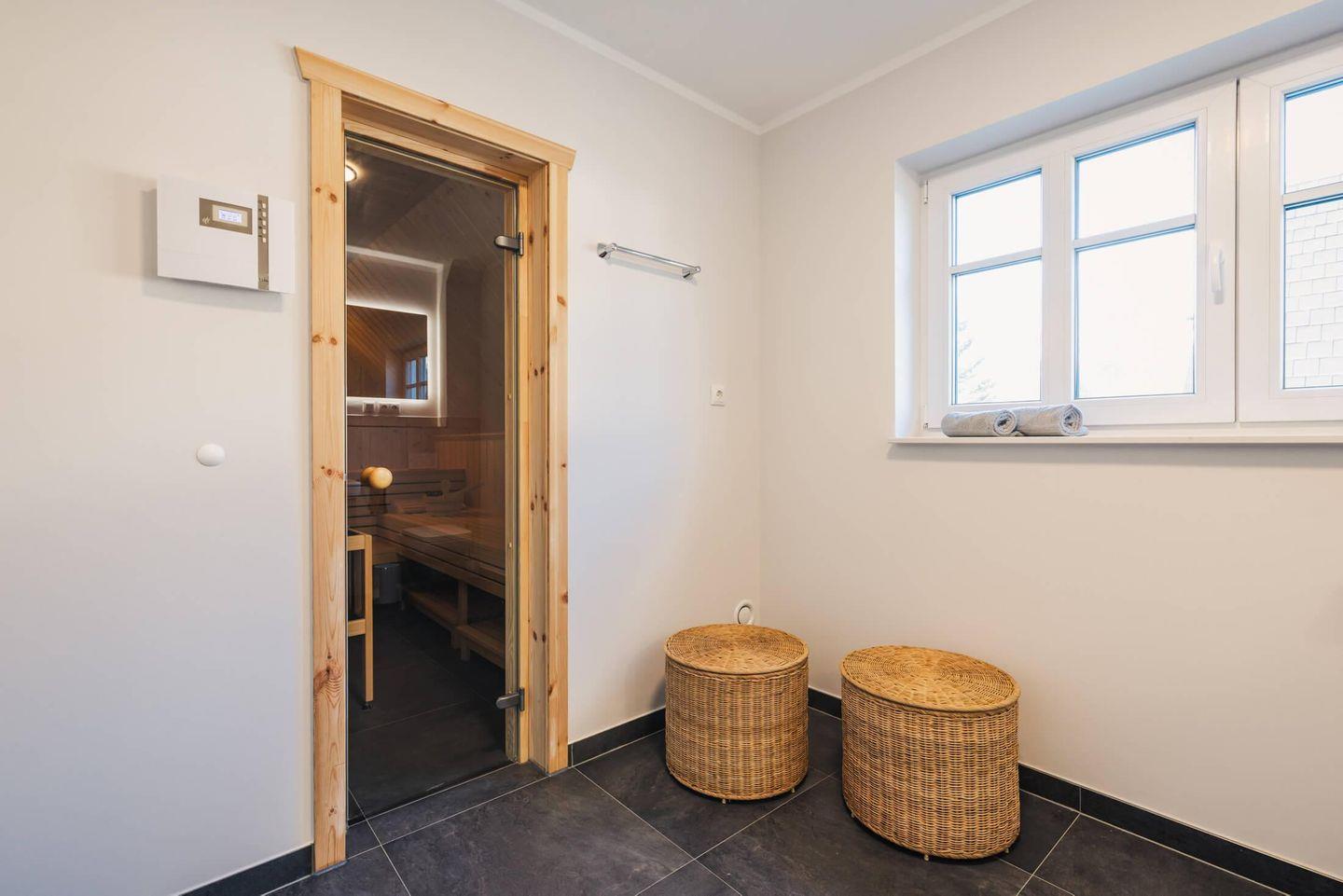 Entspannung pur: Die private Sauna lädt zum Relaxen ein und der Garten bietet ausreichend Platz zum Sonnenbaden.