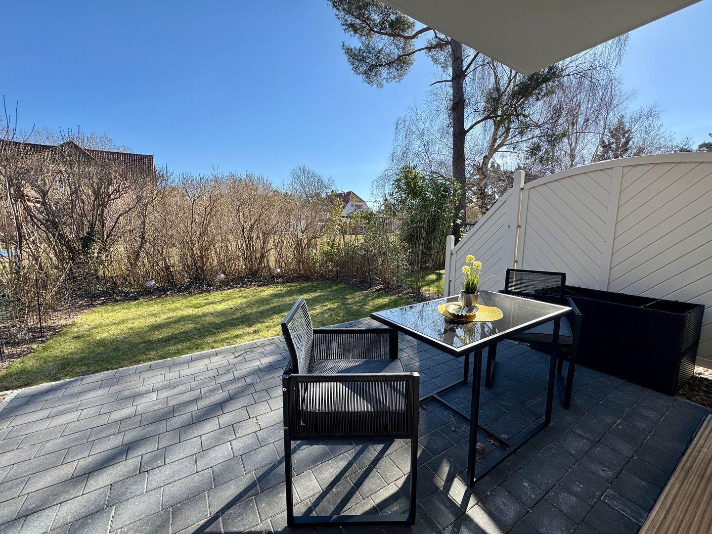 Zwischen dem leisen Rauschen des Meeres und der Ruhe des Waldes erwartet Sie ein Ort, an dem der Alltag ganz selbstverständlich in den Hintergrund tritt. Der Name "Waldresidenz" erinnert an die enge Verbindung des Hauses zur umliegenden Kiefernlandschaft. Das moderne Appartement in Prerow, 2024 erbaut, ist ein liebevoll gestalteter Rückzugsort für alle, die Erholung, Natur und Komfort miteinander verbinden möchten. Auf 50 m² im Parterre entsteht eine Atmosphäre, die sofort ein Gefühl von Ankommen vermittelt – hell, gemütlich und durchdacht eingerichtet.