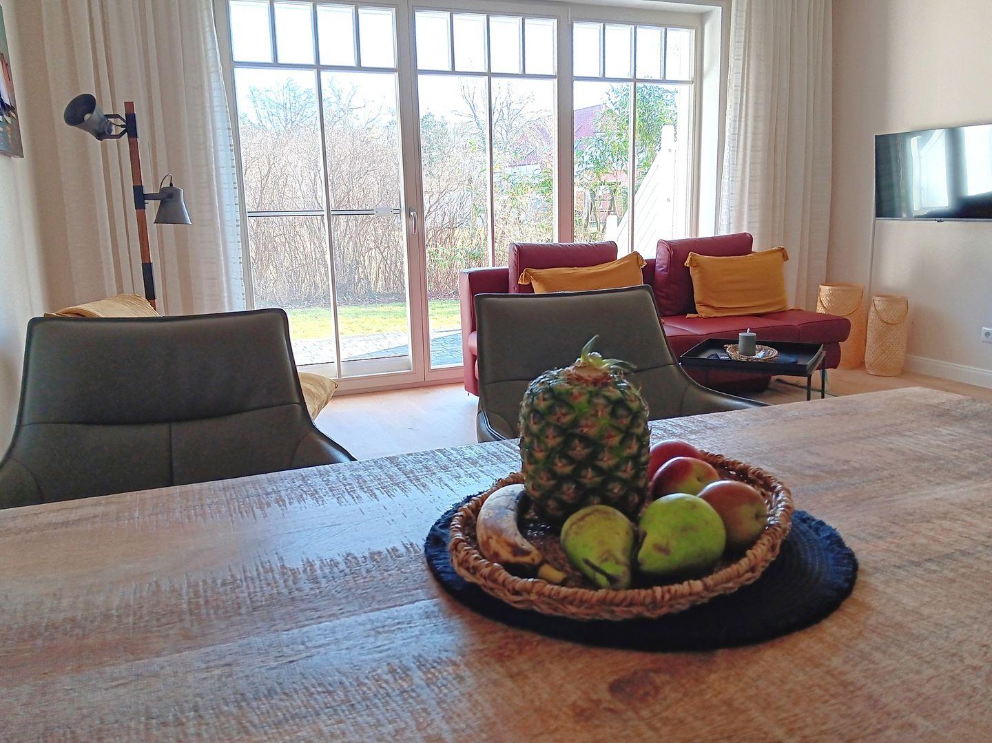 Die offene Küche ist perfekt in den Wohnraum integriert und bietet alles, was Sie für genussvolle Urlaubstage brauchen. Hier können Sie den Tag mit frischem Kaffee beginnen oder nach einem langen Strandspaziergang gemeinsam kochen und den Abend in entspannter Atmosphäre ausklingen lassen.