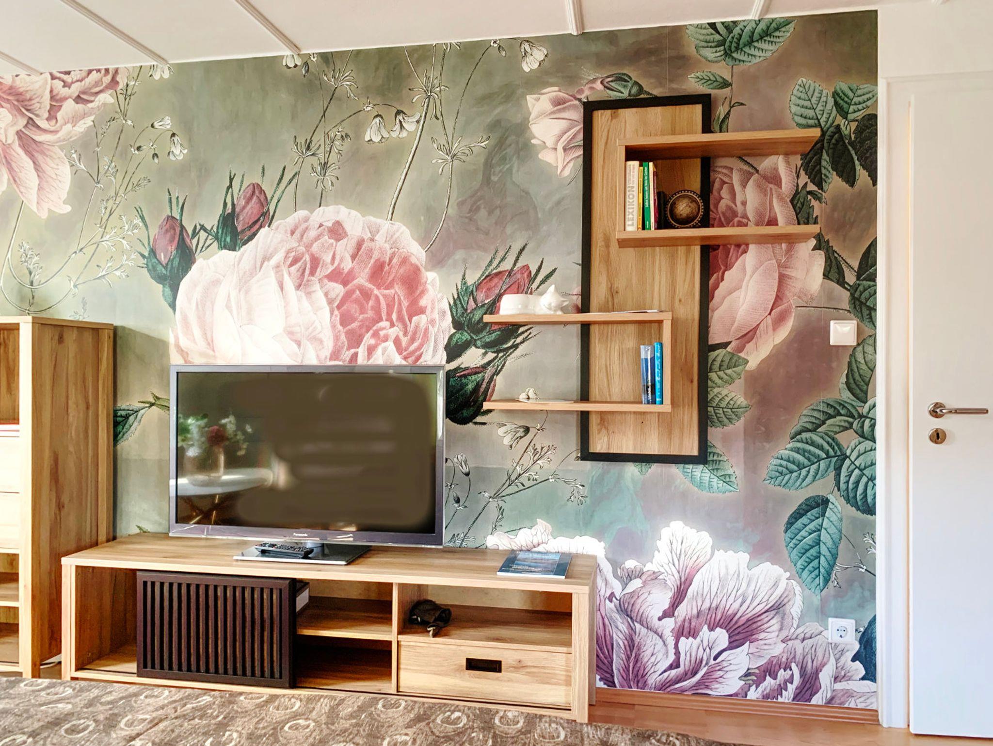 Die Ferienwohnung mit 50 qm verfügt über einen großzügigen Wohn-Schlafbereich mit einem gemütlichen Boxspringbett (180x200) und