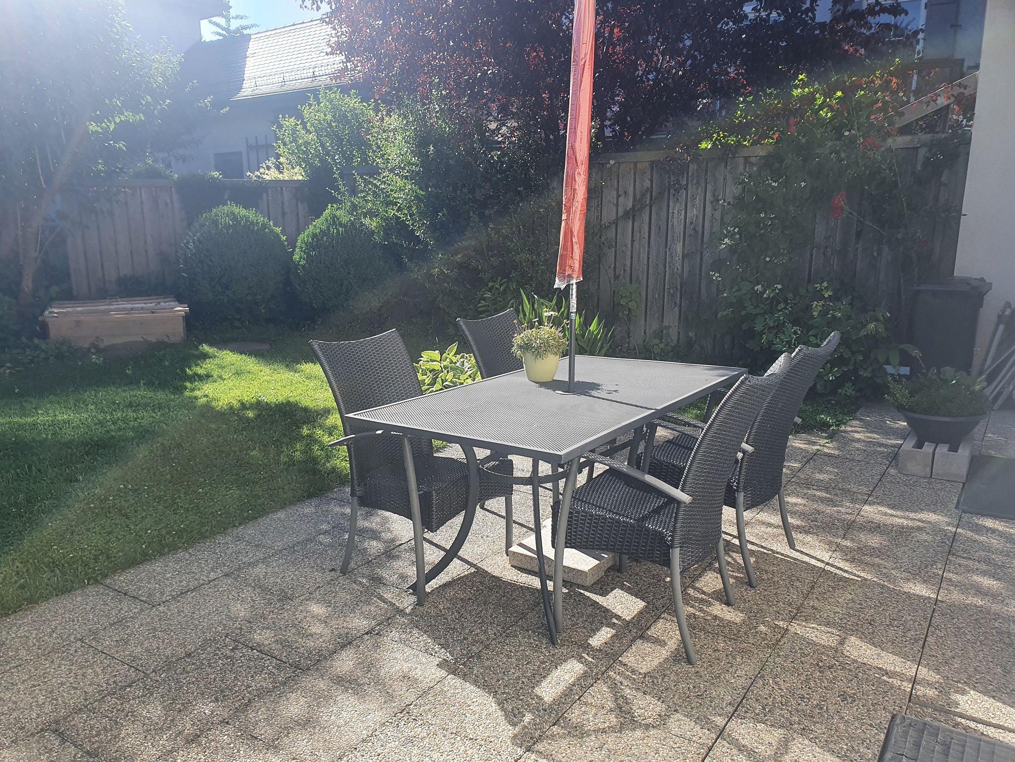 Die angebotenen, barrierefrei erreichbaren Räumlichkeiten befinden sich im Erdgeschoss derWohnanlage. Eine regulierte Wohnraumlüftung, weitgehend umgesetzte Barrierefreiheit, dieVerwendung von entsprechenden Baumaterialien, sowie der Passivhaus-Standard bilden dieGrundlage für ein hervorragendes Wohn-und Raumklima. Die Ferienwohnung ist nach Südwestenausgerichtet, verfügt über eine große Terrasse mit Sichtschutz und den Blick in einen großzügigenGarten mit altem Baumbestand und Aussicht auf Teile der Alpenkette.Ausstattung:Hier setzt sich der Grundgedanke von hochwertig, biologisch, ökologisch und nachhaltig konsequentfort: Möglichst für alle Altersgruppen und Bedürfnisse – möglichst ohne Barrieren. VollholzmöbelInformationen zur Ferienwohnung BaMBi in Prien am Chiemsee gestalten eine sehr ansprechende und gemütliche Atmosphäre. Die gute Ausstattung und der großzügige Schnitt der Wohnung erlauben es, Bekannte oder Freunde, die sich in der Ferienregion Chiemsee aufhalten beispielsweise zum Essen einzuladen.Die Küchenzeile ist neu, sehr hochwertig, mit allen Geräten, Küchenutensilien, Gewürzen, Tee unddazugehöriger Haushaltswäsche voll ausgestattet. Ein zusätzlich der Küche zugeordnetes leeres Regalbietet Platz für Ihre mitgebrachten Küchenutensilien und Einkär Essplatz ist ausgesprochen großzügig und gemütlich mit Eckbank um einen sehr altenBauerntisch (seit Generationen in Familienbesitz) gestaltet. 4 – 6 Personen finden bequem Platz.Im Wohnzimmer sitzen Sie sehr angenehm und ergonomisch perfekt auf einem bequemen Sofa mitFußhocker aus dickem und echtem Leder. Kissen und Decken sorgen zusätzlich für Gemütlichkeit. Einoriginelles Baumscheibentischchen aus der Region und ein mit diversen Büchern bestücktesWandregal dienen der Ablage in diesem Bereich der Wohnung. Unseren Gästen stehen auch einekleine Musikanlage und ein Flachbild-Fernseher mit Satellitenanschluss zur Verfügung. Sie habenZugang zu allen Angeboten aus den gängigen Mediatheken. Kostenfreies WLAN gibt Ihnen Zugangzum Internet.Das große Schlafzimmer ist ebenso komplett und nach o.g. Kriterien neu ausgestattet. Das Bett ist180 cm breit, die Liegefläche befindet sich in Komforthöhe und die Lattenroste sind an Kopf- undFußende höhenverstellbar. Ein Kinderstockbett und ein Schrank können hinter einem variablenVorhang im Schlafraum verborgen werden. Das neuwertige Bad mit bodengleicher Dusche, Glas-Trennwand und Fön ist ebenfalls komplettausgestattet. Ablagemöglichkeiten und Handtuchhaken sind ausreichend vorhanden. Handtücher zurBenutzung im Bad sind inklusive.Eine praktische Garderobennische sorgt für Ordnung und rundet das Angebot ab.Die Terrasse bietet üppig Platz. Sie ist mit einem großen Gartentisch mit dazugehörigen Stühlen fürbis zu 6 Personen einem Sonnenschirm und einem Trockengestell ausgerüstet.