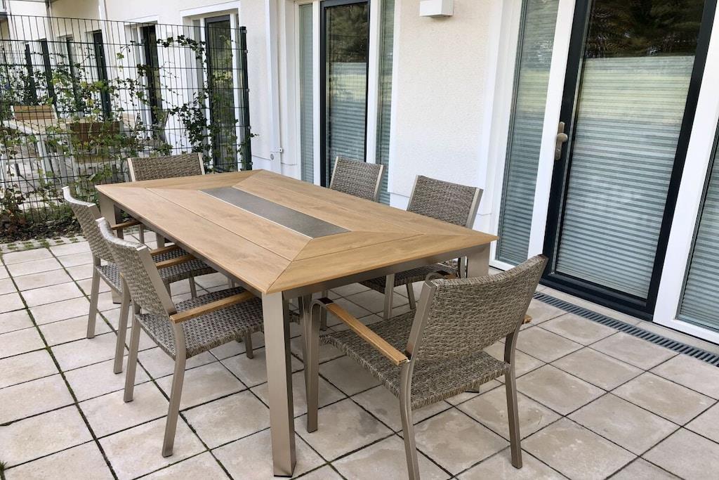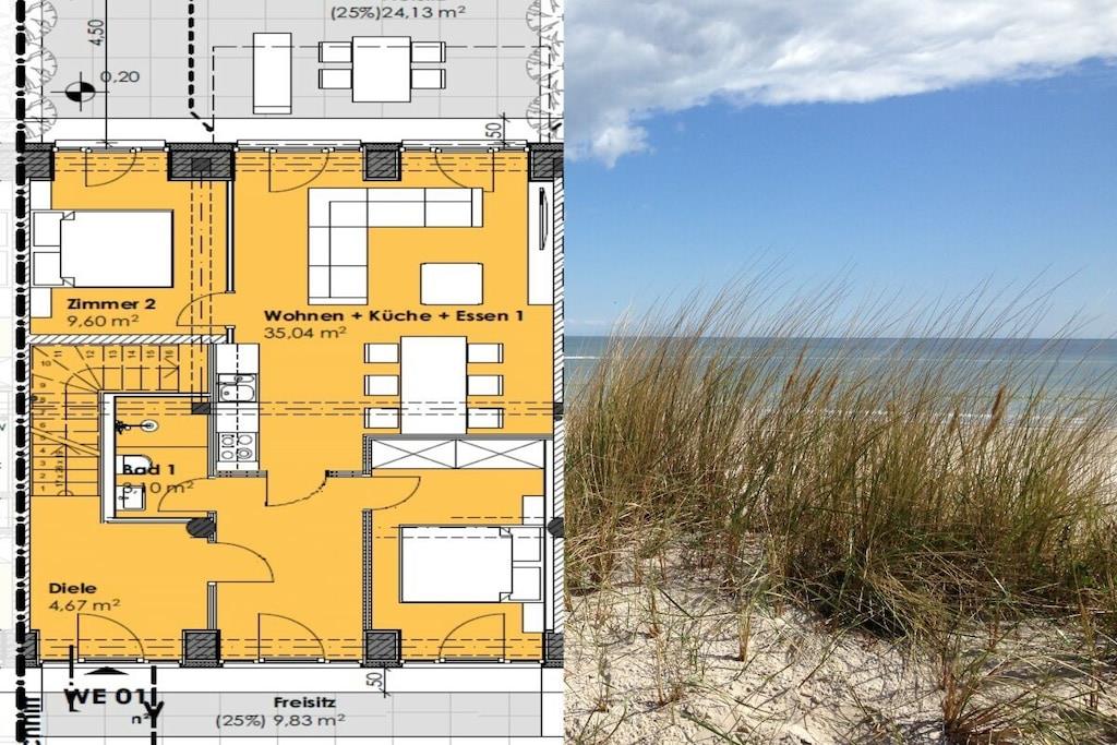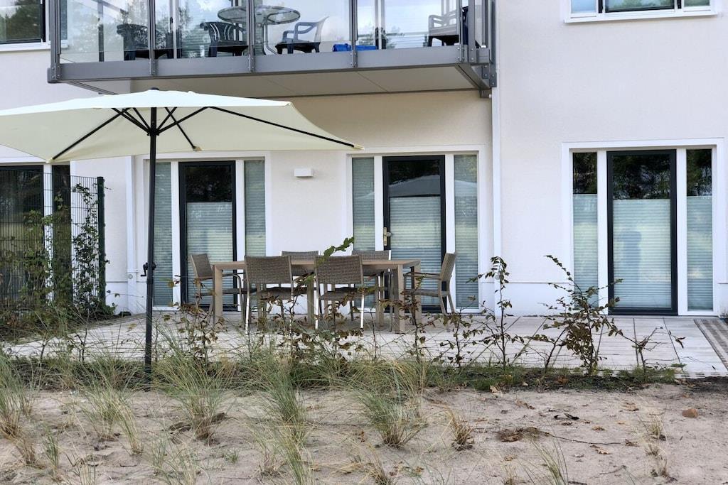 Ferieleiligheten «Meeresrauschen» (Havets lyd) ligger i Granitz-bygningen i første etasje i blokk 3 i KdF-feriestedet Prora. Dette feriehuset med 3 rom er på omtrent 67 kvadratmeter og har plass til opptil 6 personer. Det har Wi-Fi, to komfortable soverom (hvert med dobbeltseng), to sovesofaer i stuen og et dusjrom. Soverommene kan mørklegges med blendingsgardiner. Den komfortable stuen er på omtrent 30 kvadratmeter og inkluderer to sovesofaer for to personer, samt en moderne kjøkkenkrok utstyrt med mikrobølgeovn, komfyr med fire kokeplater, vannkoker, kaffetrakter, stekeovn og kjøleskap med fryseboks. Én gratis parkeringsplass er tilgjengelig (etter ferdigstillelse), og det er to private terrasser, den ene mot land og den andre mot havet.