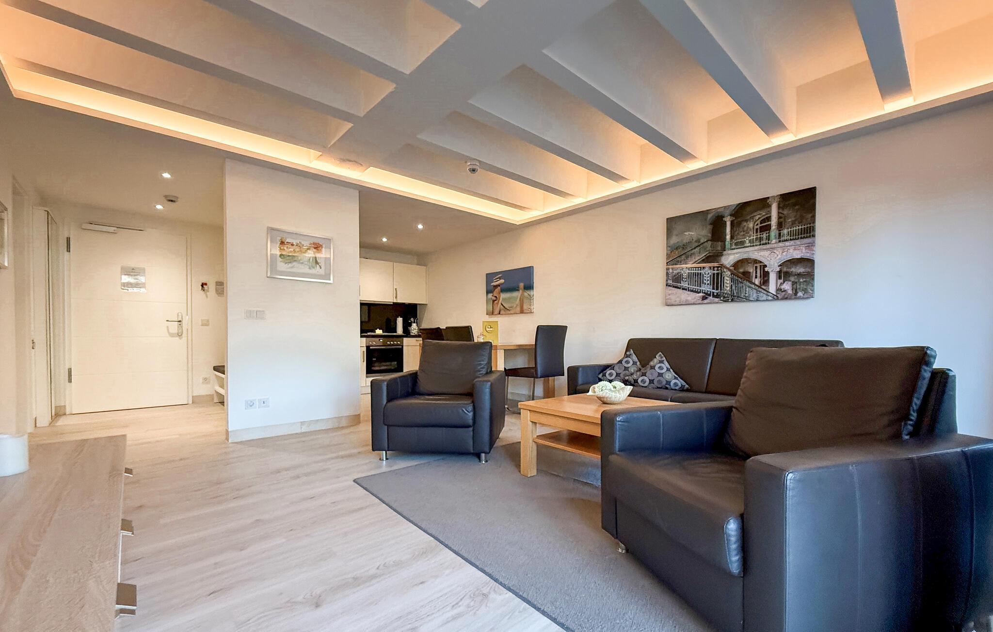 Ferieleiligheten "Moon" lover en atmosfære av høy kvalitet og velvære. Eksklusive møbler er perfekt koordinert og innbegrepet av en livsstil som kombinerer harmoni og eleganse. Alle møbler og alt tilbehør er nøye utvalgt, og ingenting er overlatt til tilfeldighetene. Det er lagt særlig vekt på et sunt inneklima og allergivennlige materialer. Takket være den tre meter høye takhøyden kan du nyte en spesielt romslig følelse her.