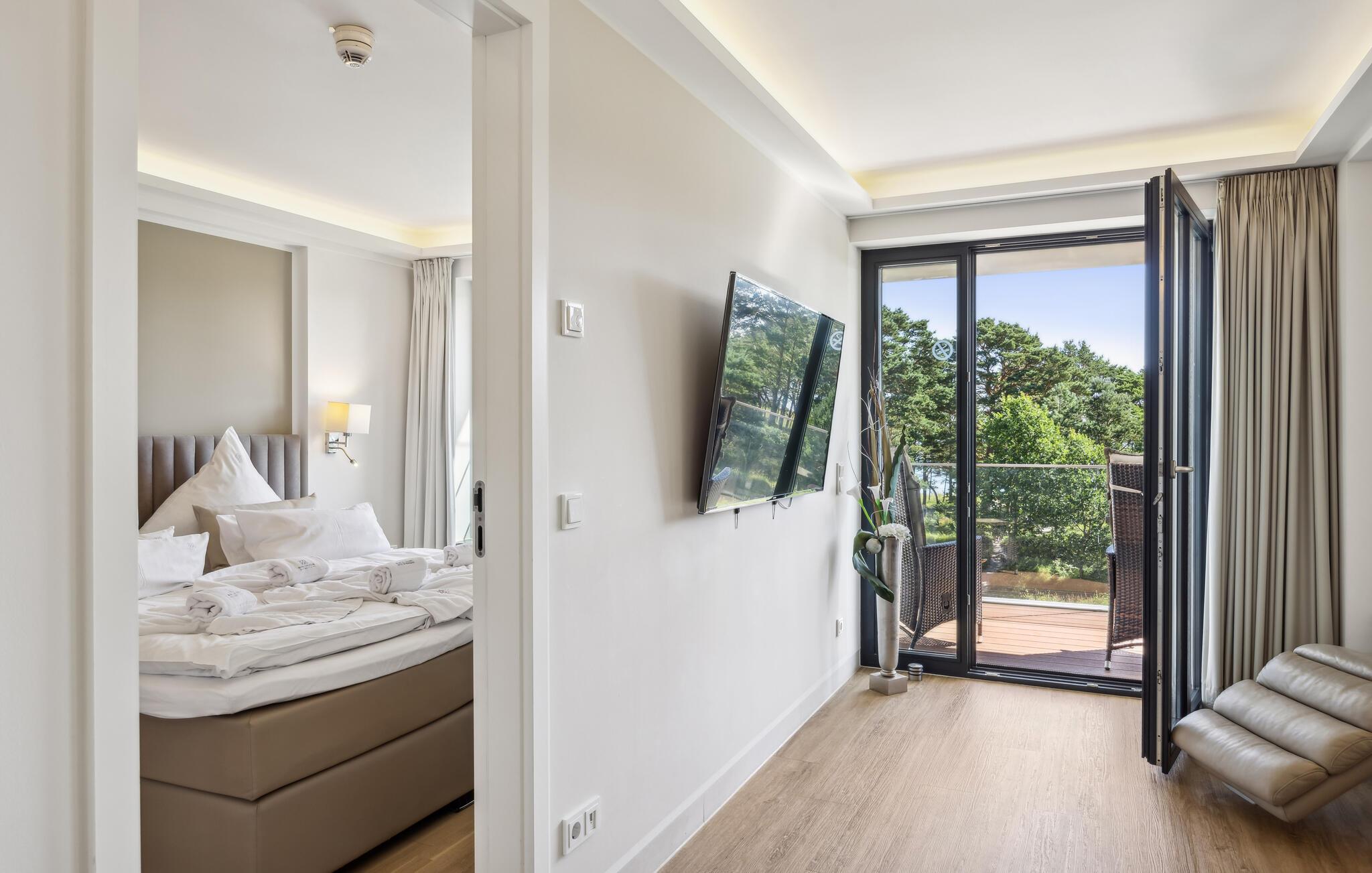 Nyt solen på balkongen, hvor du har en fantastisk utsikt helt til Østersjøen. Tilbring varme sommerdager eller lune kvelder i den lune og private strandstolen på sandstranden foran komplekset.