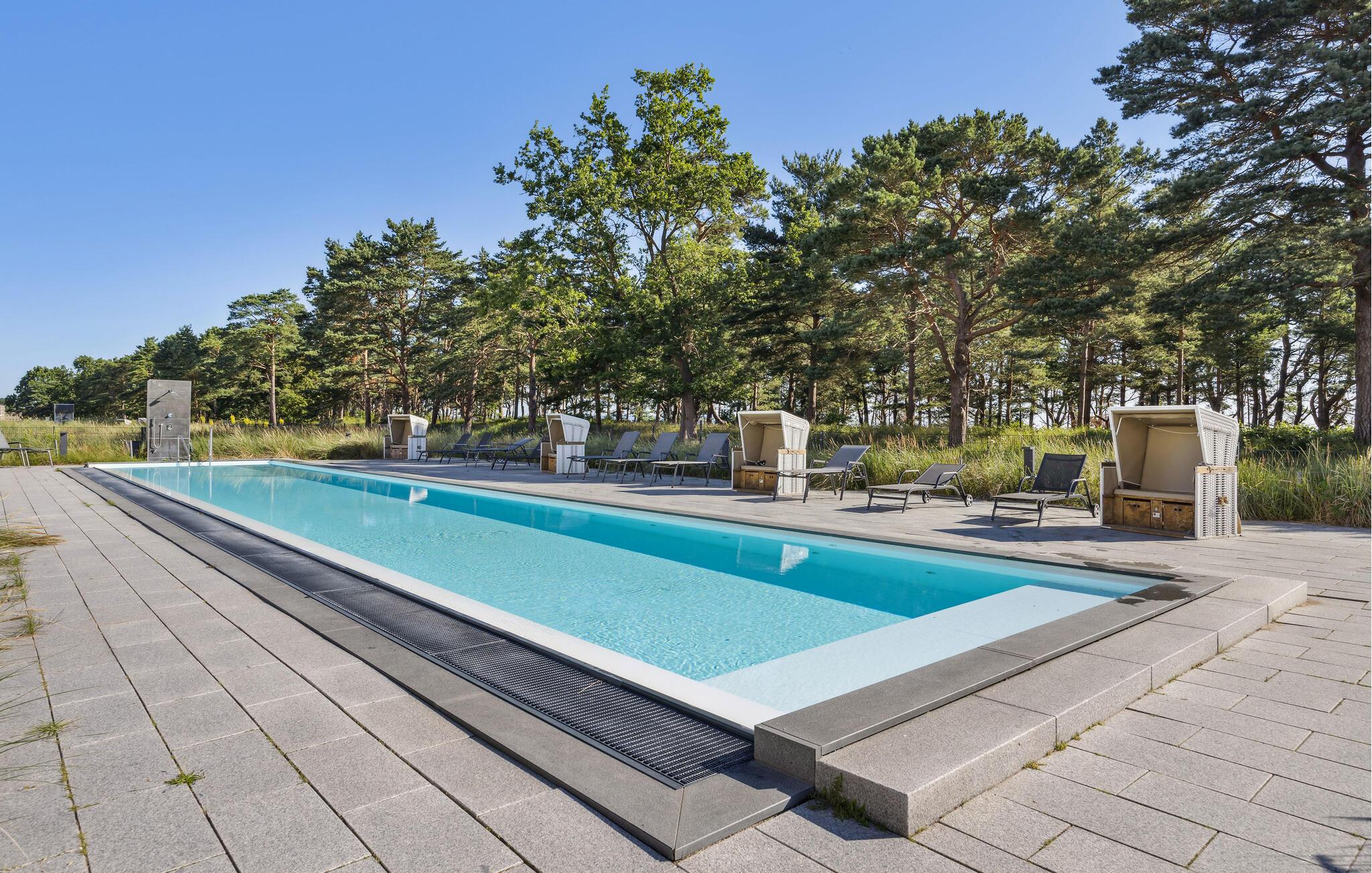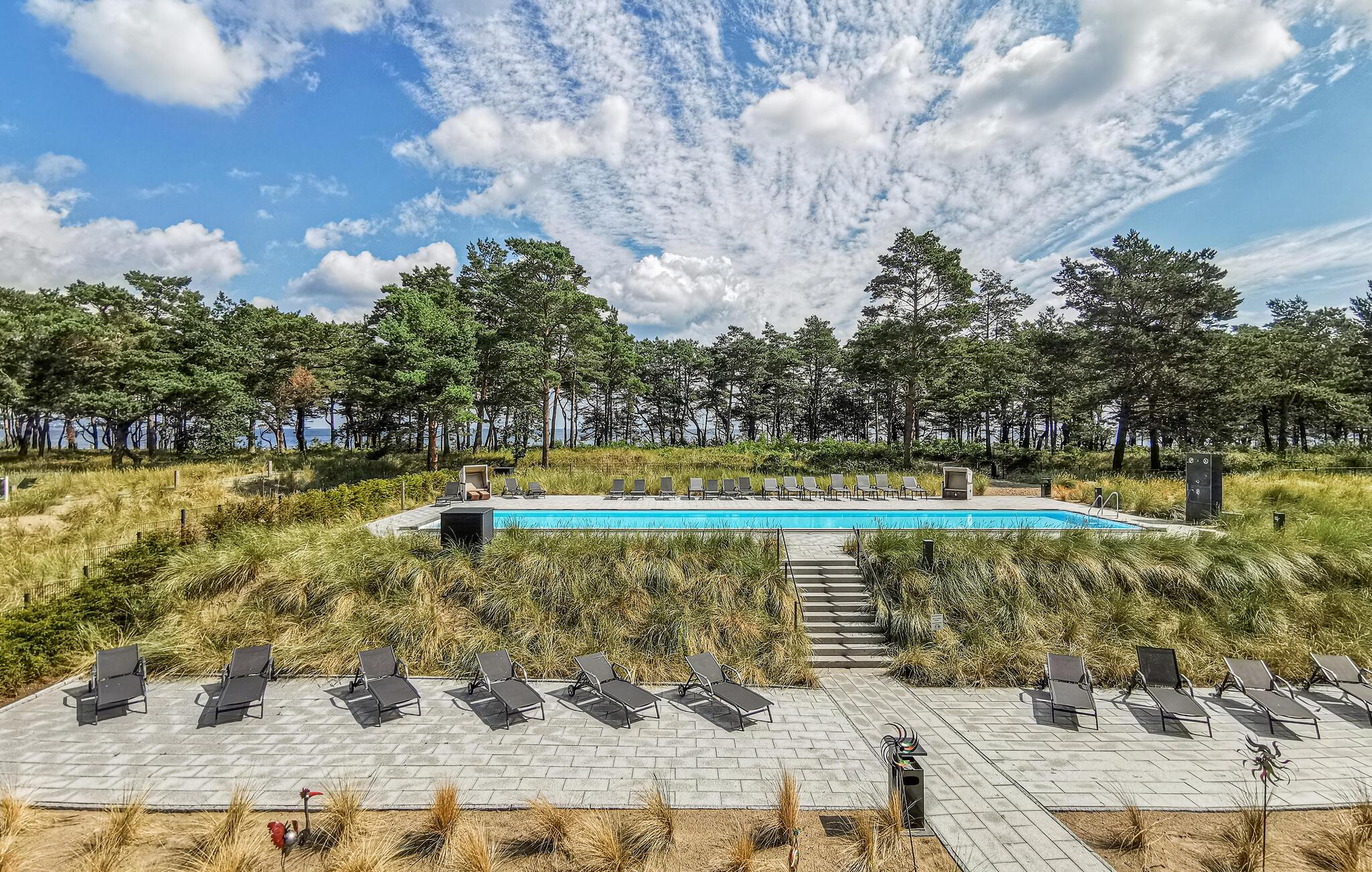 Fra leiligheten din kan du gå til det romslige velværeområdet på Prora Solitaire, der du kan slappe av i innendørsbassenget, badstuene og avslapningsområdene, og flere ganger i uken kan du delta i yogatimer eller kondisjonstrening. Det er en veldig fin lekeplass for de minste.