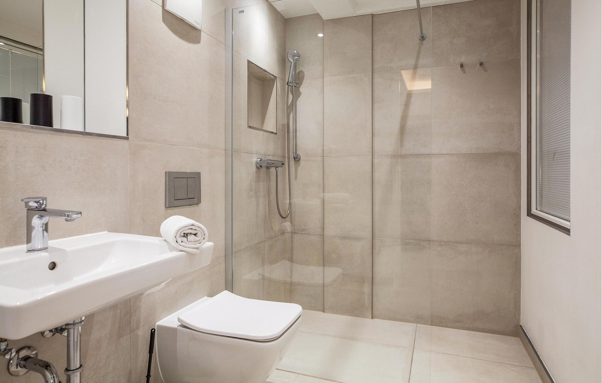 - WC med varmt og kaldt vann, Dusj