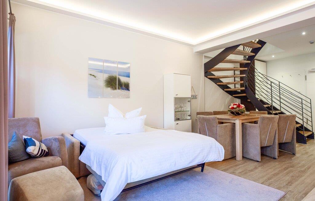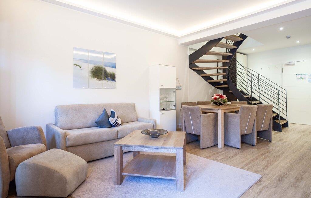 Den moderne maisonette-leiligheten venter på sine gjester bare noen få skritt fra den vakre stranden. Føl deg som hjemme i den lyse leiligheten med møbler av høy kvalitet, og tilbring en uforglemmelig ferie i en tiltalende atmosfære.