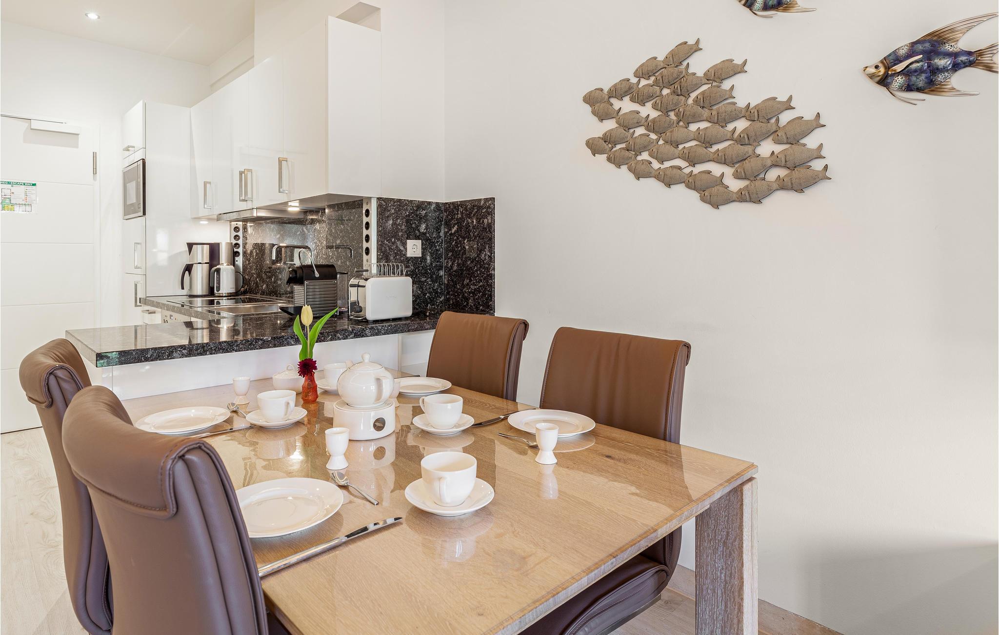 Den romslige terrassen, som er utstyrt med moderne hagemøbler, er det perfekte stedet å nyte solen og Østersjøluften. Solsenger er også tilgjengelig for perfekt soling. Badet med dagslys er utstyrt med en spesielt stor dusj, og kaffeelskere vil garantert glede seg over Nespresso-maskinen (vennligst ta med dine egne kapsler).