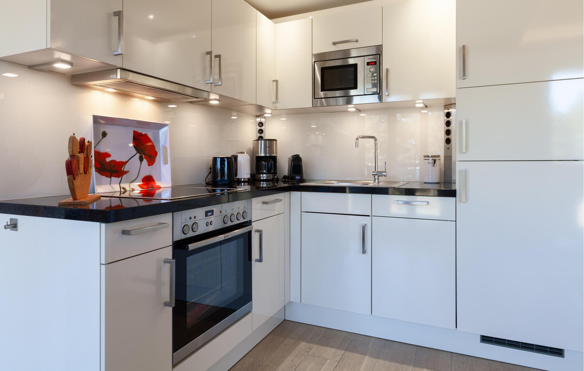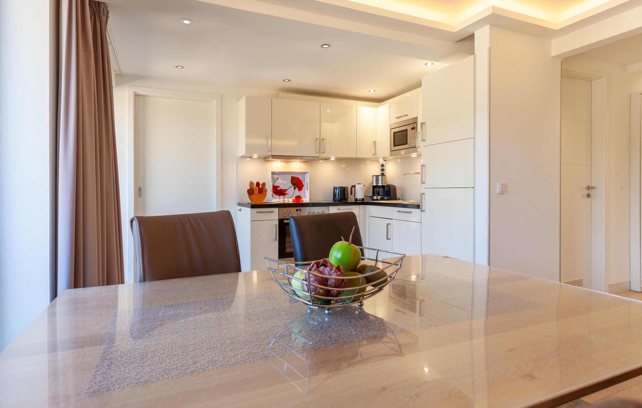 Den moderne leiligheten venter på sine gjester bare noen få skritt fra den vakre stranden. Finn deg til rette i den velutstyrte og lyse leiligheten, slapp av i den private infrarøde badstuen og tilbring en uforglemmelig ferie i en tiltalende atmosfære.