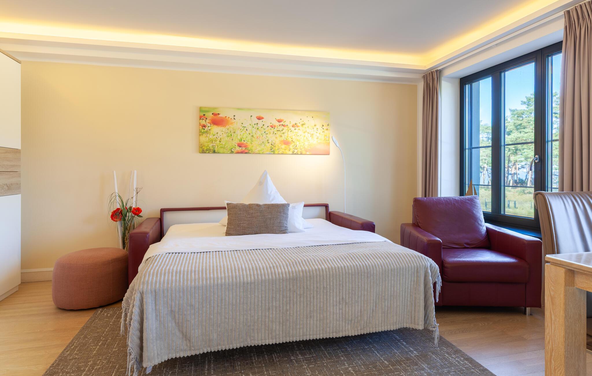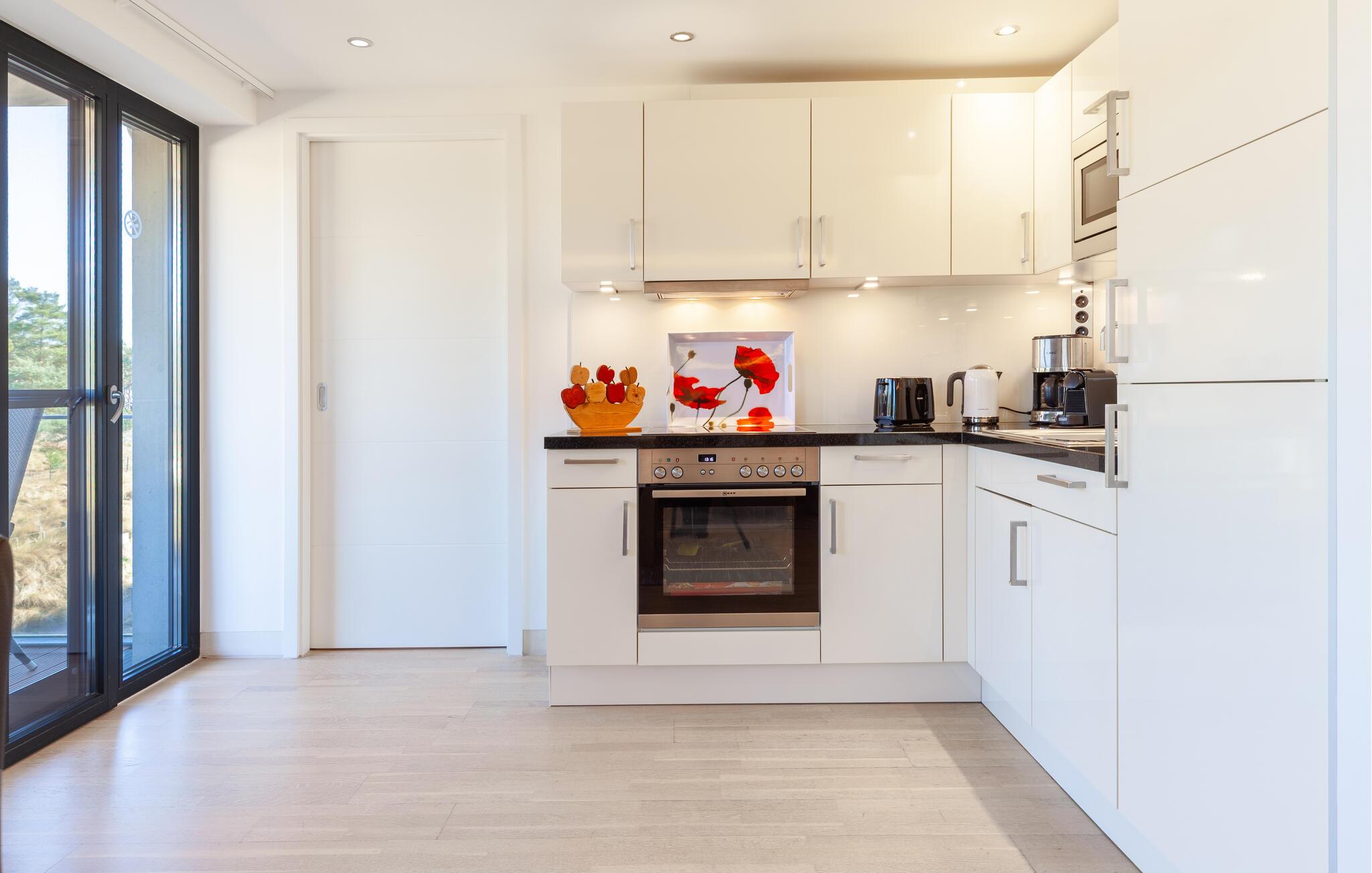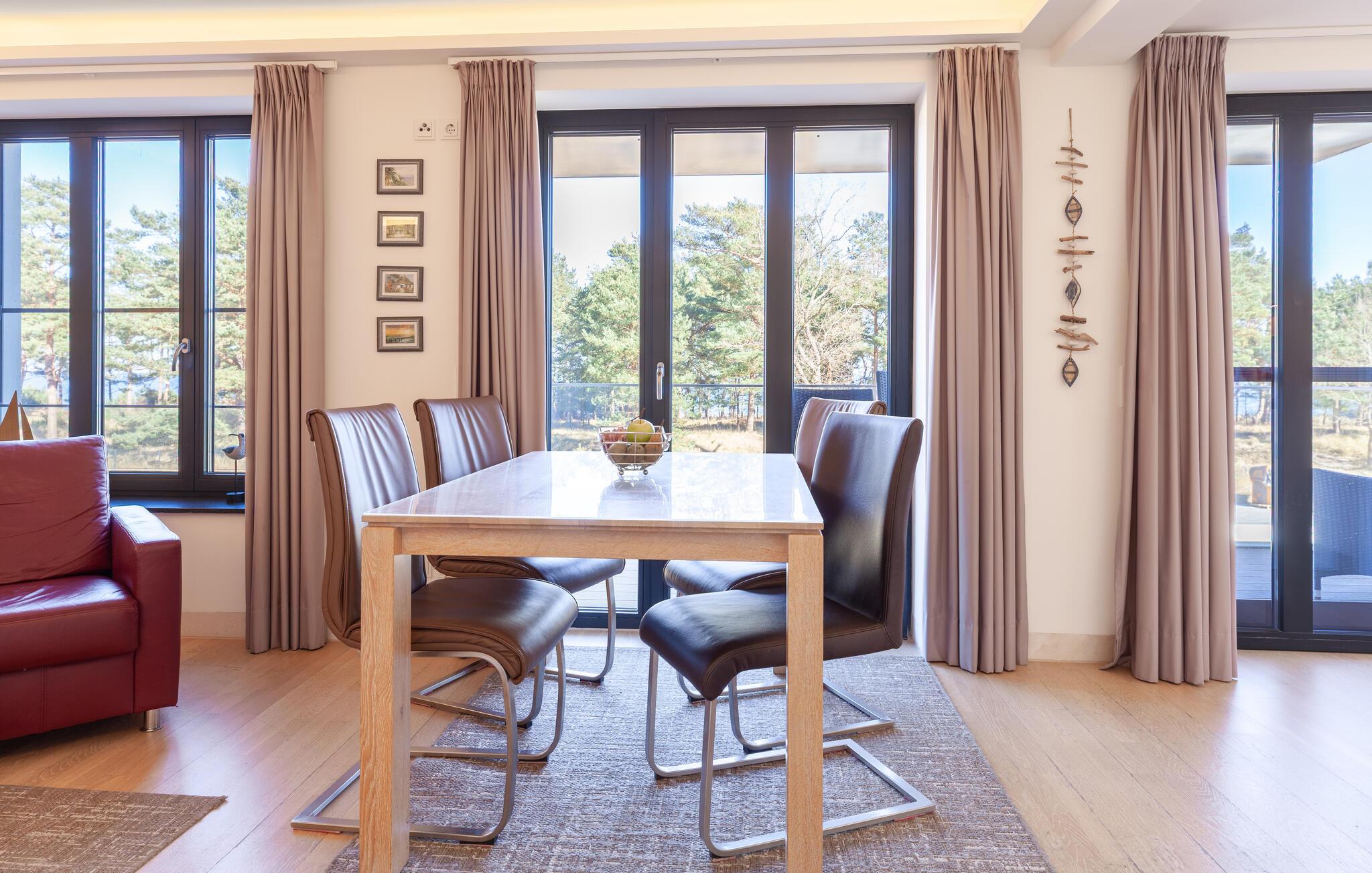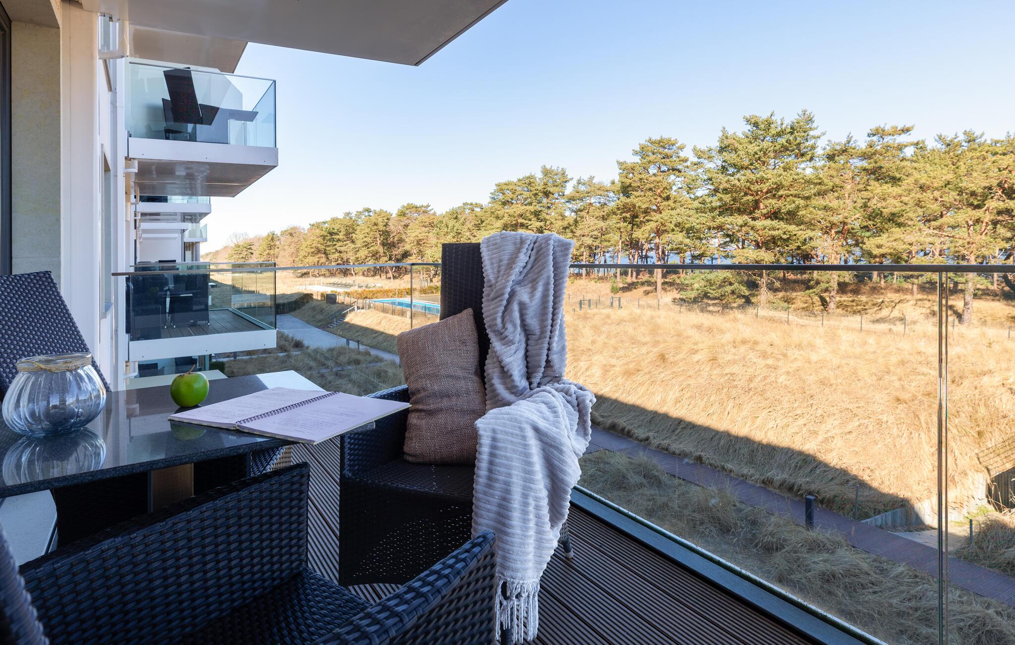 Gå ut fra den lyse stuen og ut på balkongen, hvor du har en vakker utsikt helt til Østersjøen.