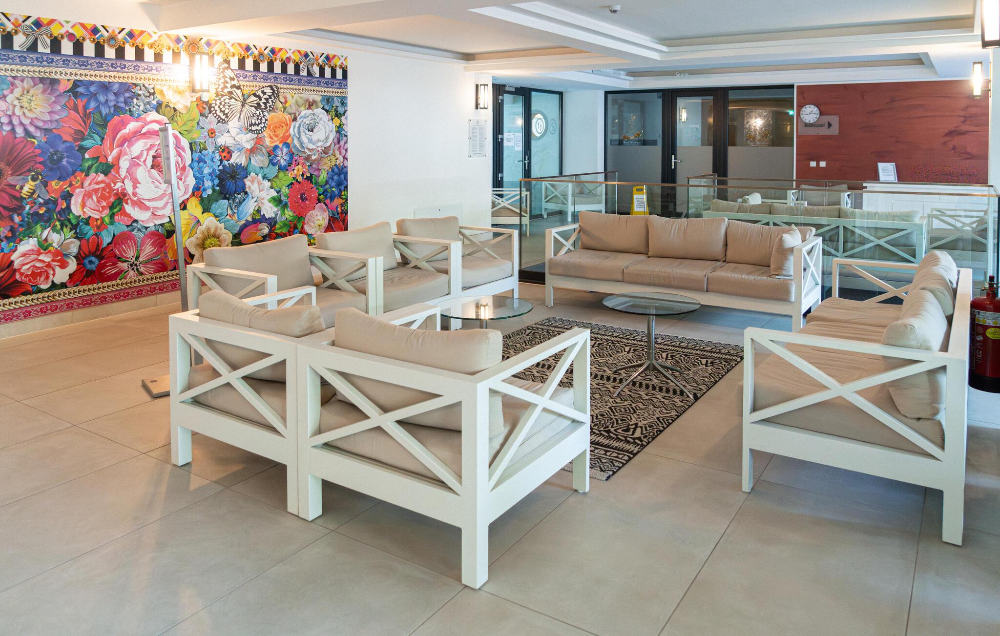Fra leiligheten din kan du nå den romslige velværeavdelingen, der innendørsbasseng, badstuer og avslapningsområder innbyr til avslapping, og du kan delta i yogaklasser eller kondisjonstrening flere ganger i uken. Det er en nydelig lekeplass for de minste.