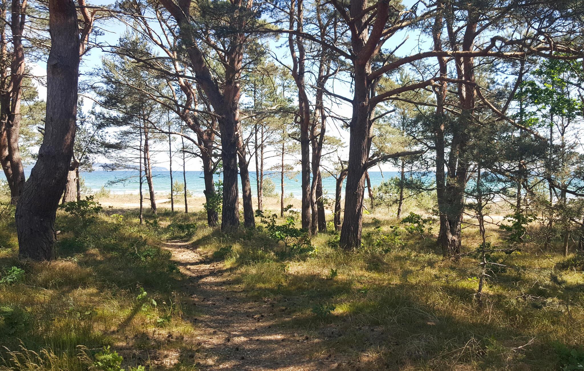 Den moderne leiligheten ligger bare noen få skritt fra den vakre stranden. Nyt den fantastiske utsikten over hagen, furuskogen og de glitrende bølgene i Østersjøen, og finn dere godt til rette som par.