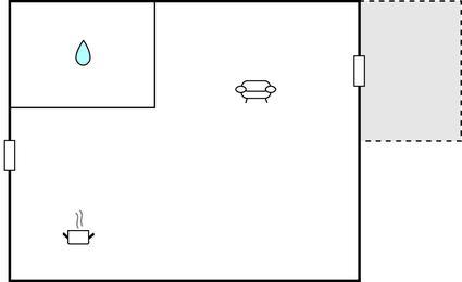 Stue/kjøkken - 2 Soveplasser. (Dobbeltseng(er)). 1 Soveplasser. (Sovesofa, madrass eller lign.).