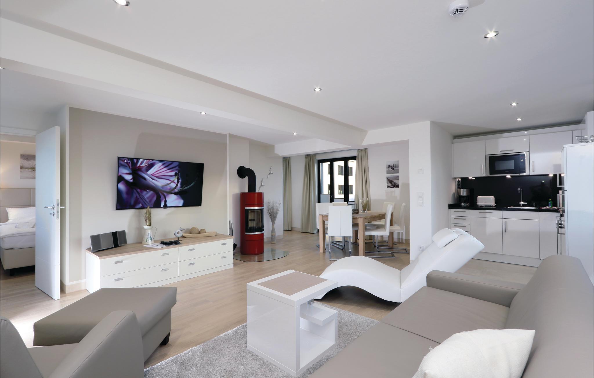 Ferieleiligheten lover en atmosfære av høy kvalitet og velvære. Eksklusive møbler er perfekt koordinert og innbegrepet av en livsstil som kombinerer harmoni og eleganse. Hvert eneste møbel og tilbehør til hjemmet er nøye utvalgt, og ingenting er overlatt til tilfeldighetene. Vedovnen skaper en spesielt koselig atmosfære i hjemmet. Takket være den geniale designen kan du nyte den spesielle atmosfæren som flammene skaper i rommene, både i stuen og på soverommet.
