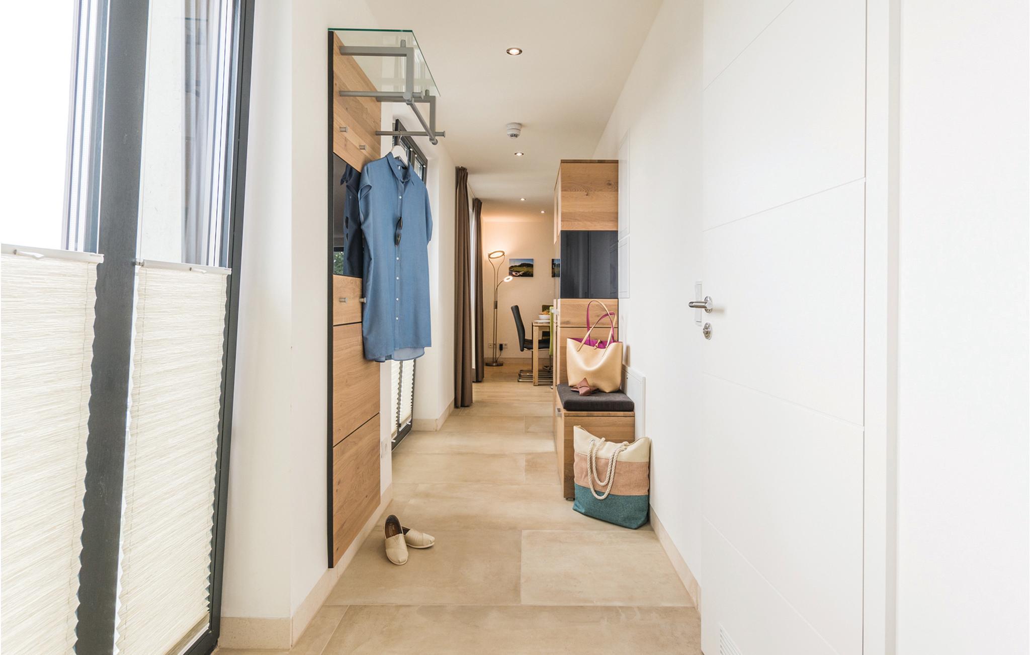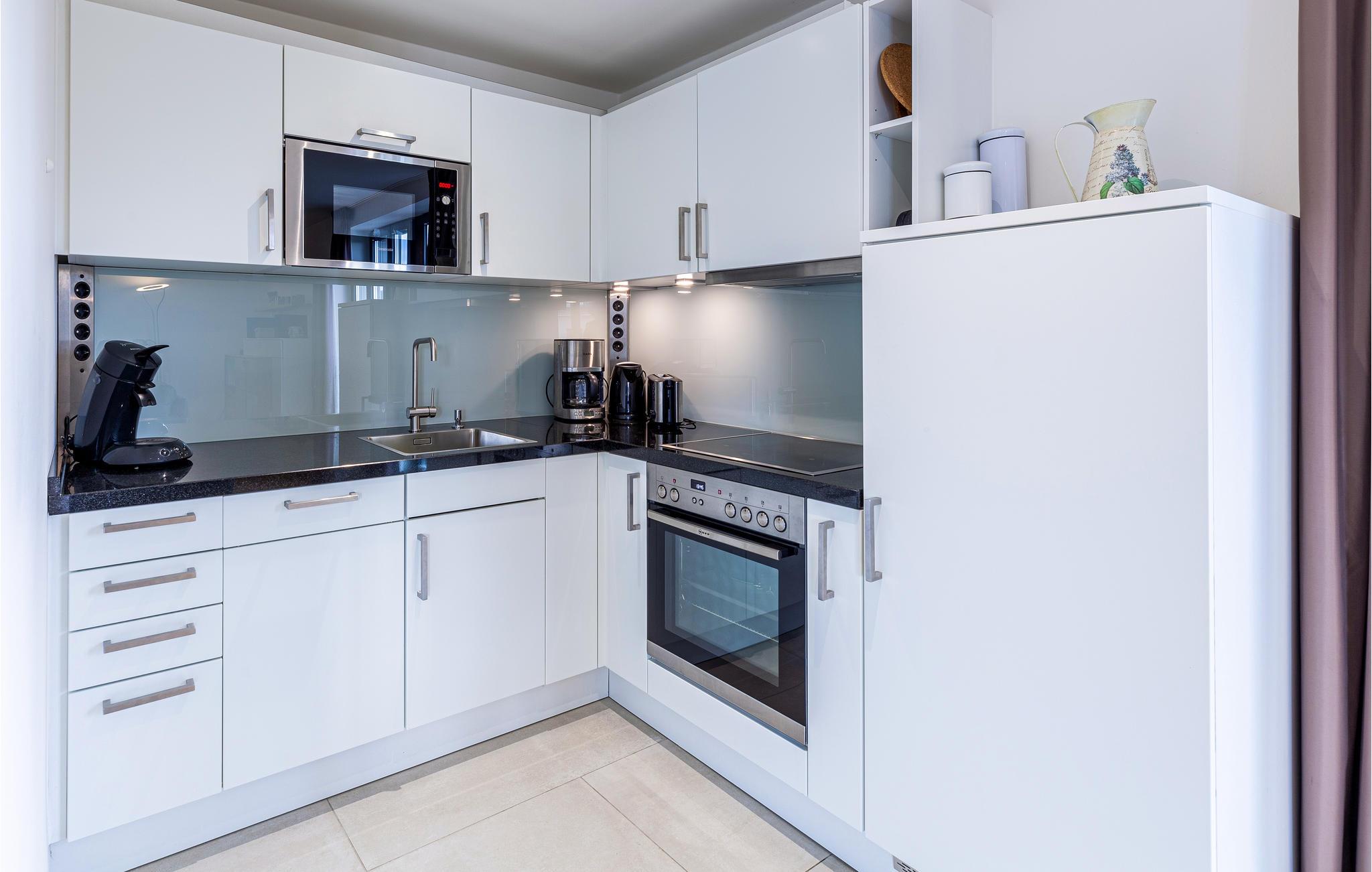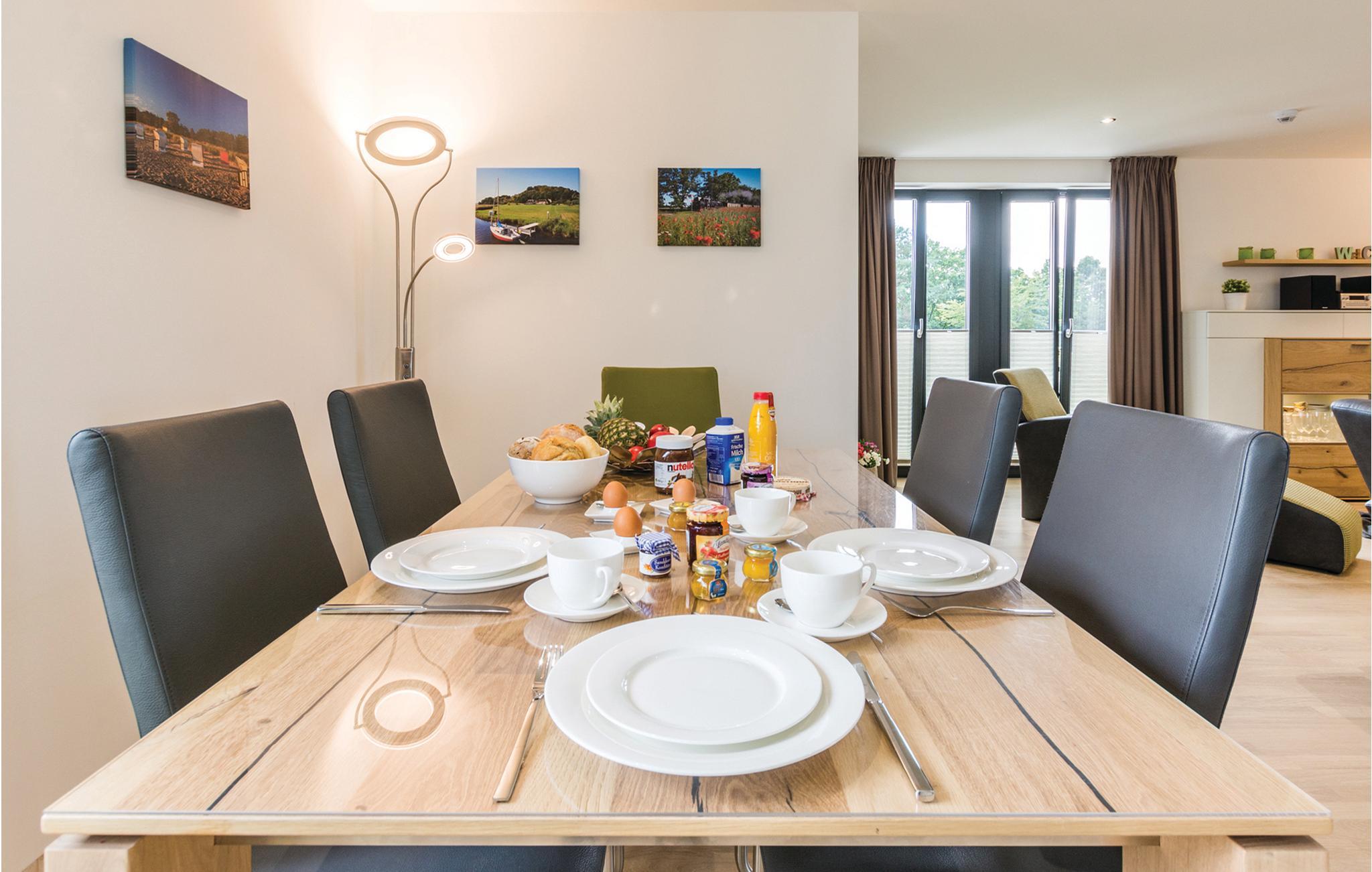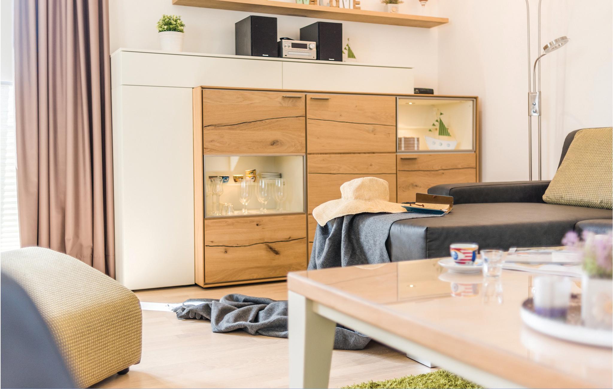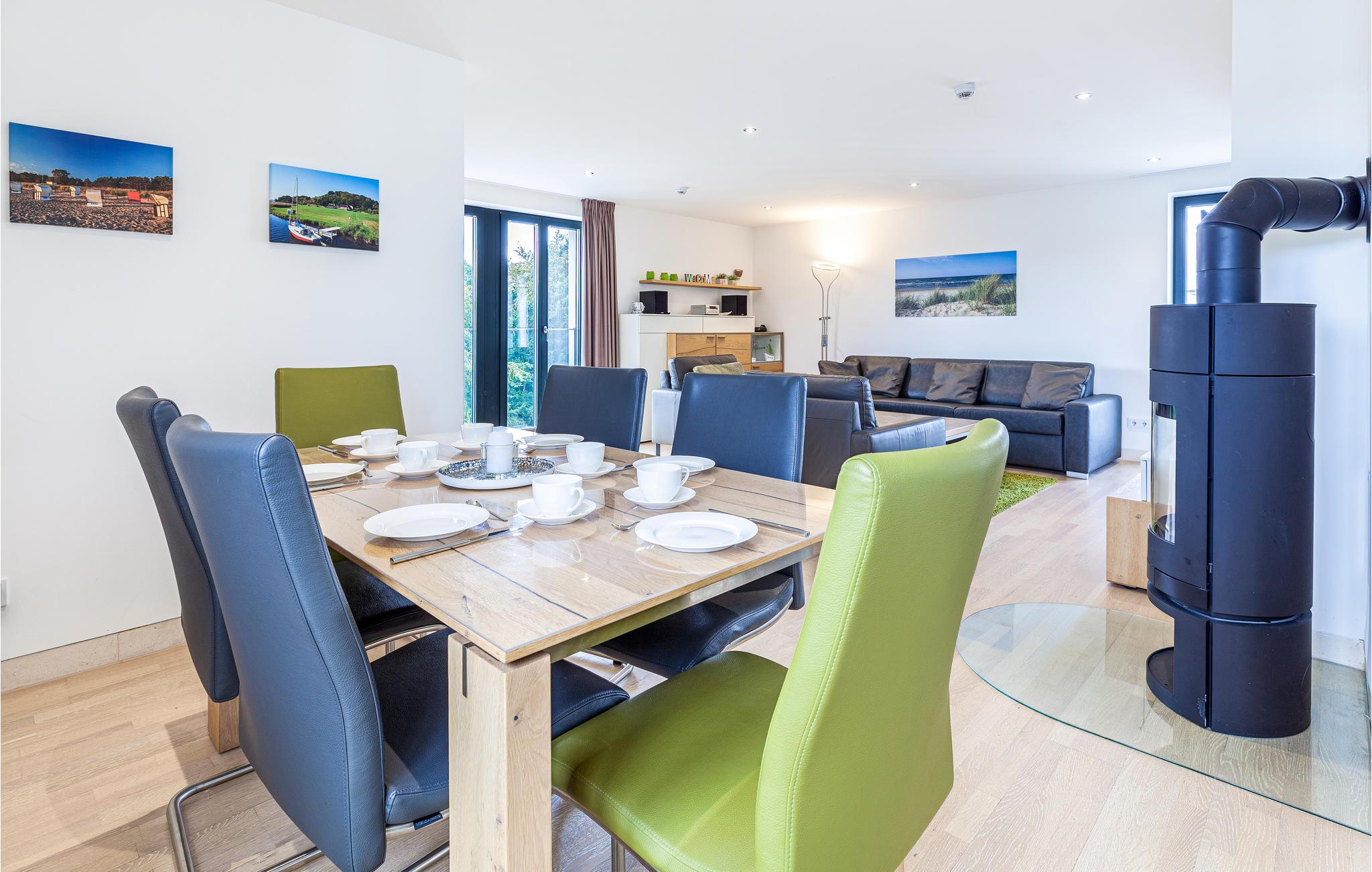 Den moderne leiligheten venter på sine gjester bare noen få skritt fra den vakre stranden i sidefløyen av den fredede bygningen. Føl deg som hjemme i den lyse leiligheten, som er innredet med høy standard og har vinduer på tre sider, slik at du kan nyte en nesten allsidig utsikt over øya Rügen. Mot nord, vest og sør kan du beundre utsikten over skogen og lyngheiene. På kjølige kvelder kan du kose deg foran den knitrende peisen.