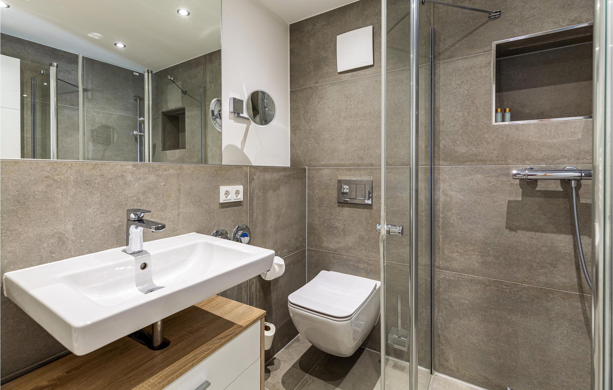 Fra leiligheten din kan du nå det romslige velværeområdet, der innendørsbassenget, badstuene og avslapningsområdene innbyr til avslapping, og du kan delta i yogatimer eller kondisjonstrening flere ganger i uken. Det er en nydelig lekeplass for de minste.
