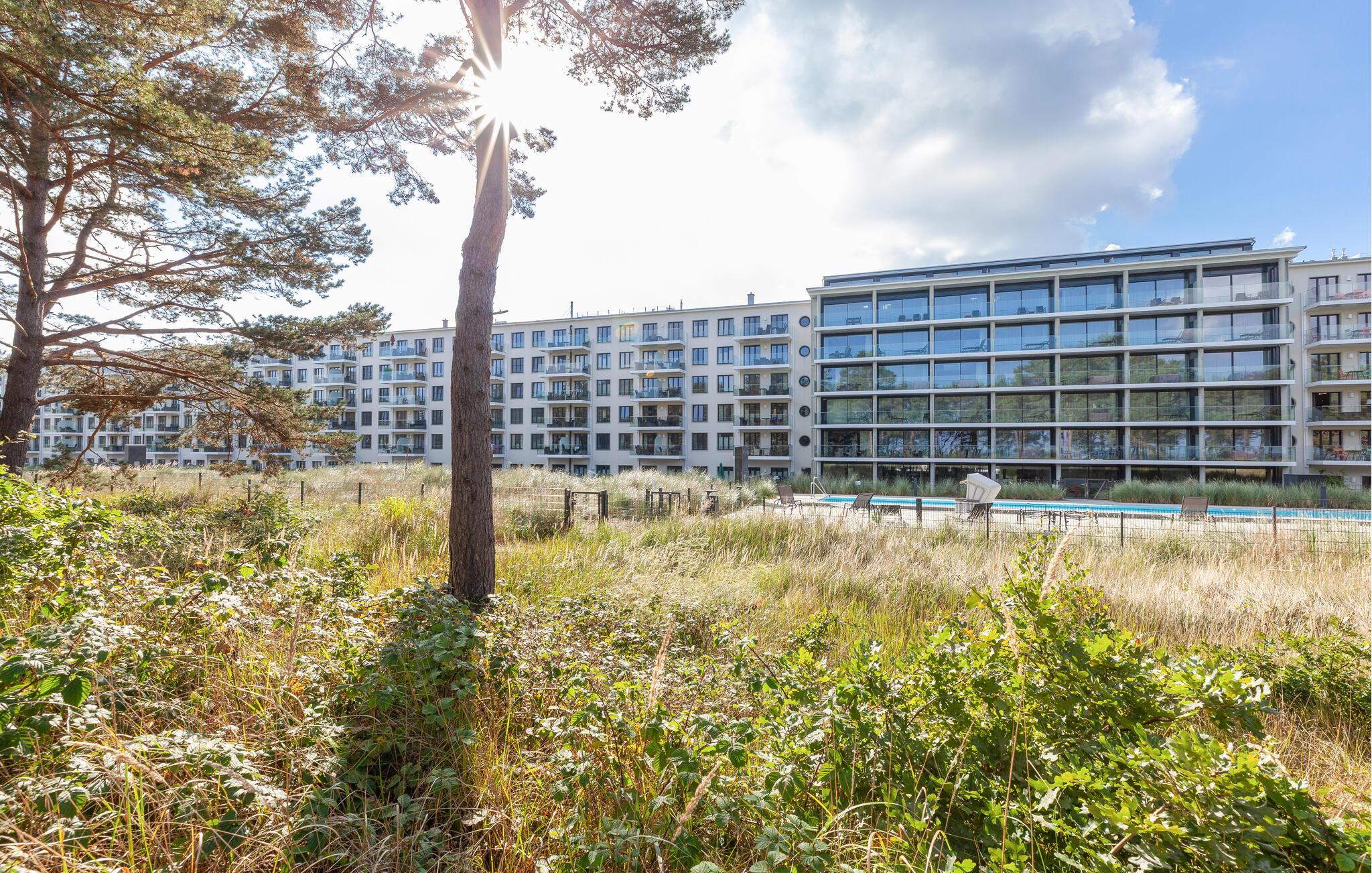 Den moderne leiligheten venter på sine gjester bare noen få skritt fra den vakre stranden. Føl deg som hjemme i den lyse leiligheten med møbler av høy kvalitet, og tilbring en uforglemmelig ferie i en tiltalende atmosfære. Den romslige, åpne stuen er gjennomstrømmet av lys takket være de store vindusflatene, og utsikten åpner seg og kan vandre over den lille furuskogen til Østersjøen.