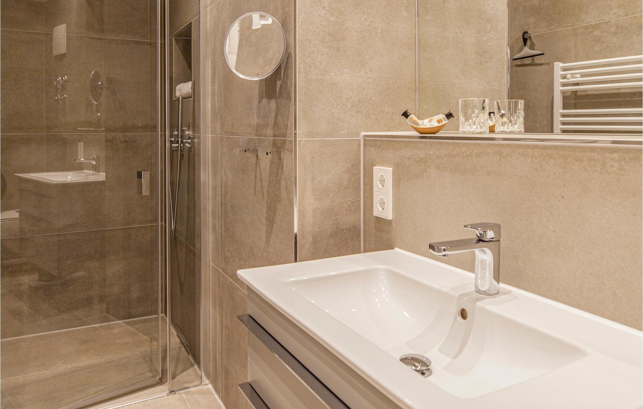 - WC med varmt og kaldt vann, Dusj