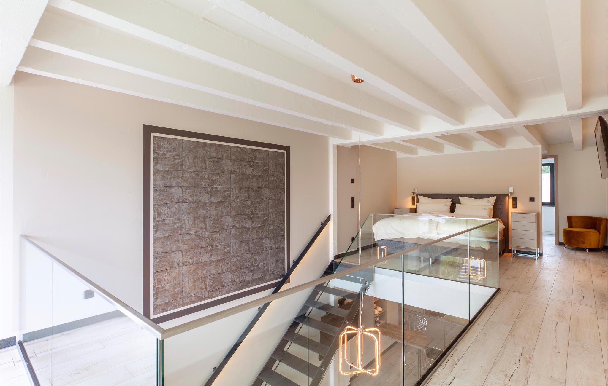 Den moderne, stilfullt innredede leiligheten venter på sine gjester i feriehuset "Prora Solitaire" på Rügen. Store panoramavinduer og den åpne planløsningen sørger for optimalt lysinnfall. Nyt den åpne romfølelsen og gjør deg komfortabel i en tiltalende atmosfære.
