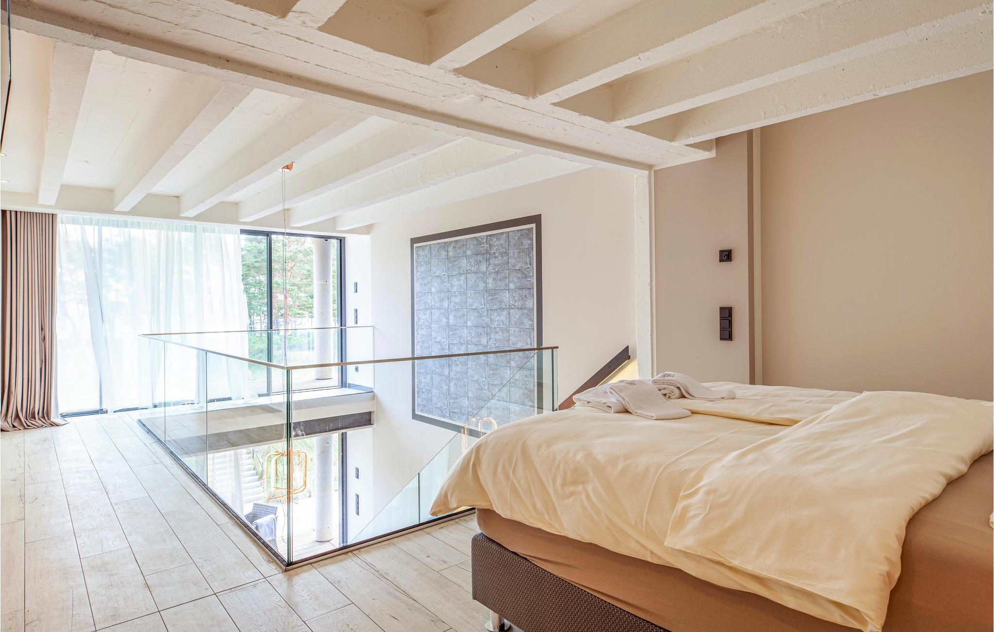 Den moderne, stilfullt innredede leiligheten venter på sine gjester i feriehuset "Prora Solitaire" på Rügen. Store panoramavinduer og den åpne planløsningen sørger for optimalt lysinnfall. Nyt den åpne romfølelsen og gjør deg komfortabel i en tiltalende atmosfære.