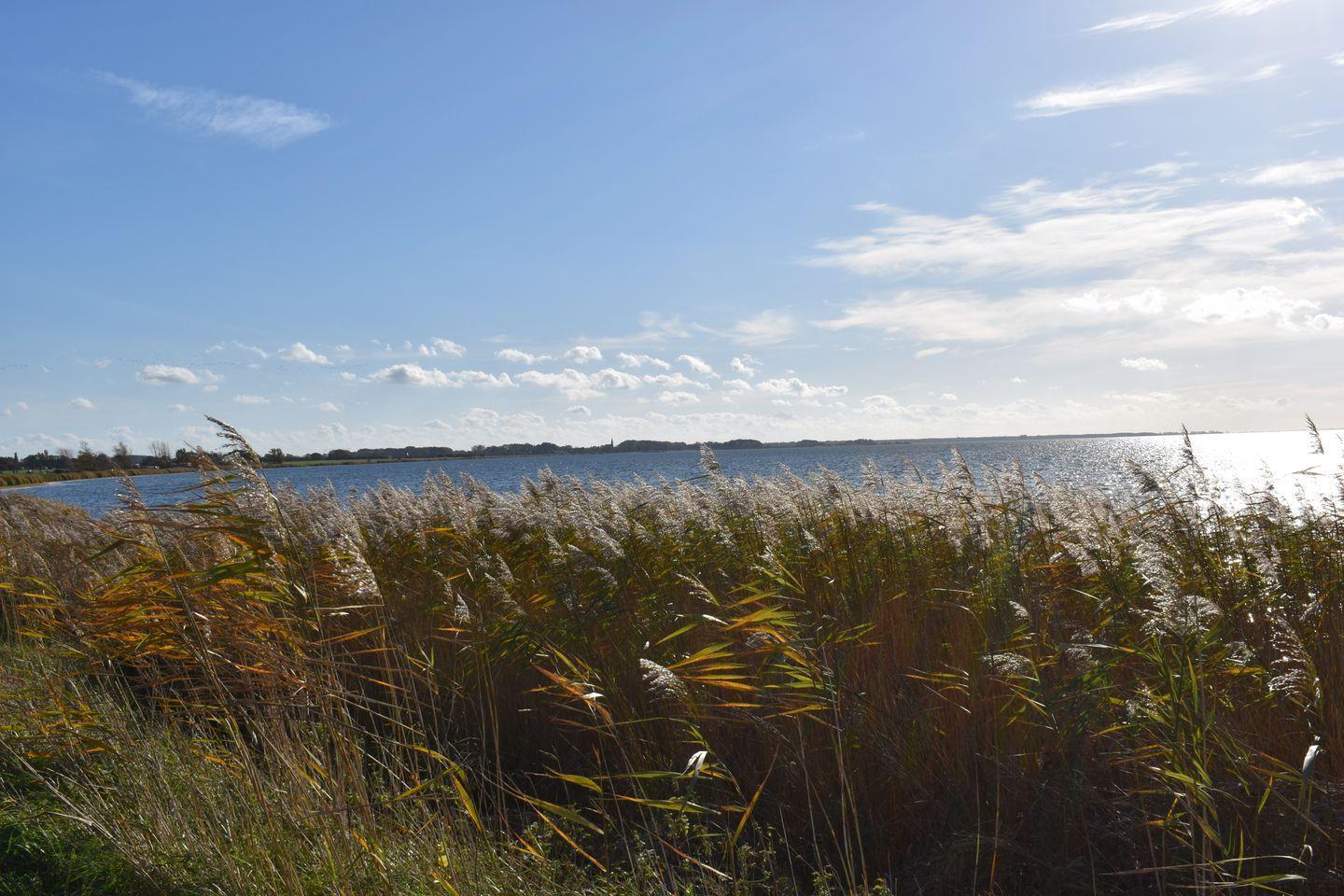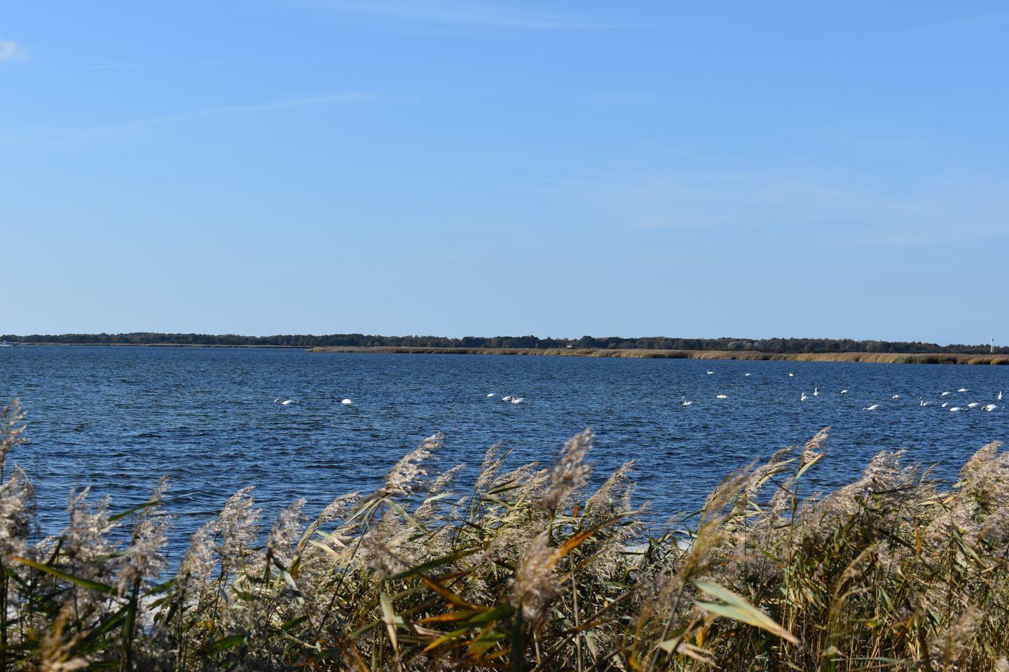 Doch nicht nur das Haus selbst überzeugt: Puddemin ist ein ruhiger Naturhafen, eingebettet in das schützenswerte Boddengebiet der Puddeminer Wiek. Der Hafen bietet Besucherliegeplätze, einen Boots- und Fahrradverleih sowie ein Hafenrestaurant, das zur entspannten Auszeit direkt am Wasser einlädt. In der Umgebung locken stille Wege, Vogelparadiese und kulturelle Spuren. Der Ort liegt in einem europäischen Vogelschutzgebiet – besonders Vogelbeobachter werden die Boddenlandschaft lieben, denn Kraniche, Graugänse, Seeadler oder Kormorane ziehen hier regelmäßig vorbei. Auch Wander- und Radrouten beginnen ganz in der Nähe: So führt beispielsweise die Rügener Märchenstraße durch Puddemin, vorbei an Gutshäusern, alten Alleen und mystischen Orten.