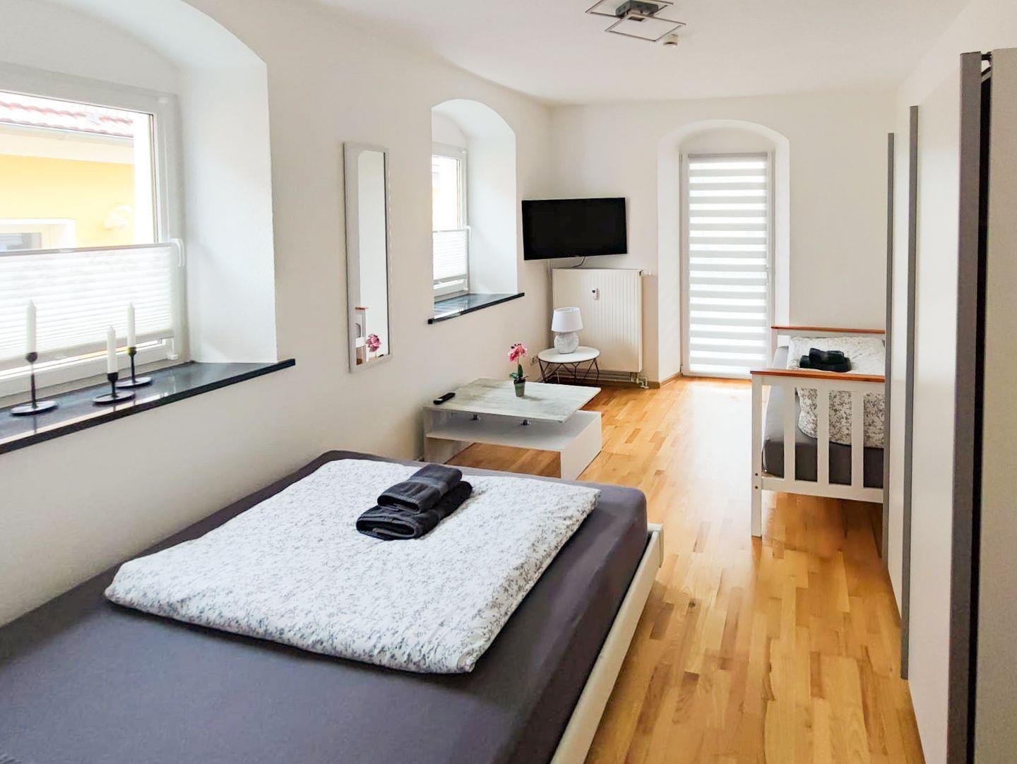 Willkommen in der Wohnperle*Carré Charlott* 4, Ihrer idealen Ferienwohnung in Pulsnitz! Diese moderne Unterkunft bietet auf 67 m² Platz für bis zu vier Gäste und überzeugt mit zwei gemütlichen Schlafzimmern und einem Wohnzimmer. Genießen Sie die Annehmlichkeiten einer voll ausgestatteten Küche mit Spülmaschine und Mikrowelle sowie WLAN und einem überdachten Balkon. Haustiere sind willkommen, und ein privater Parkplatz ist vorhanden. Entspannen Sie sich in dieser einladenden Ferienwohnung!