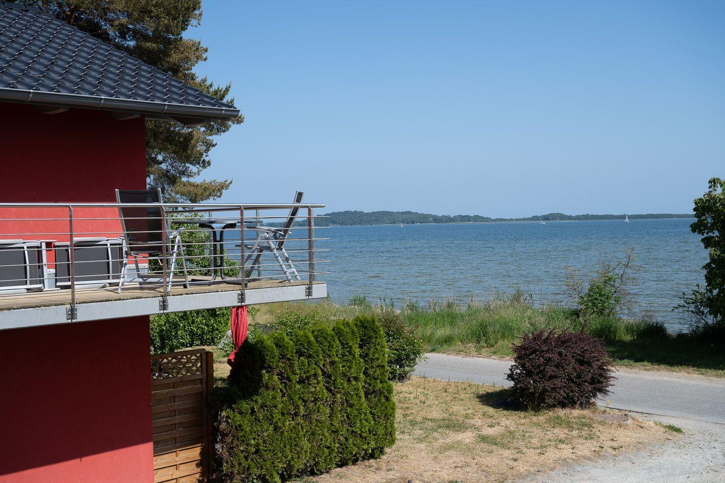 Herrliche Stunden verbringen Sie auch auf dem großen Balkon mit Esstisch und Stühlen. Auch ein Holzkohlegrill steht zu Ihrer Nutzung bereit. Nur 10 Meter entfernt liegt ein kleiner Strandabschnitt mit Wasserzugang, ein größerer Naturstrand ist ca. 100 Meter entfernt.