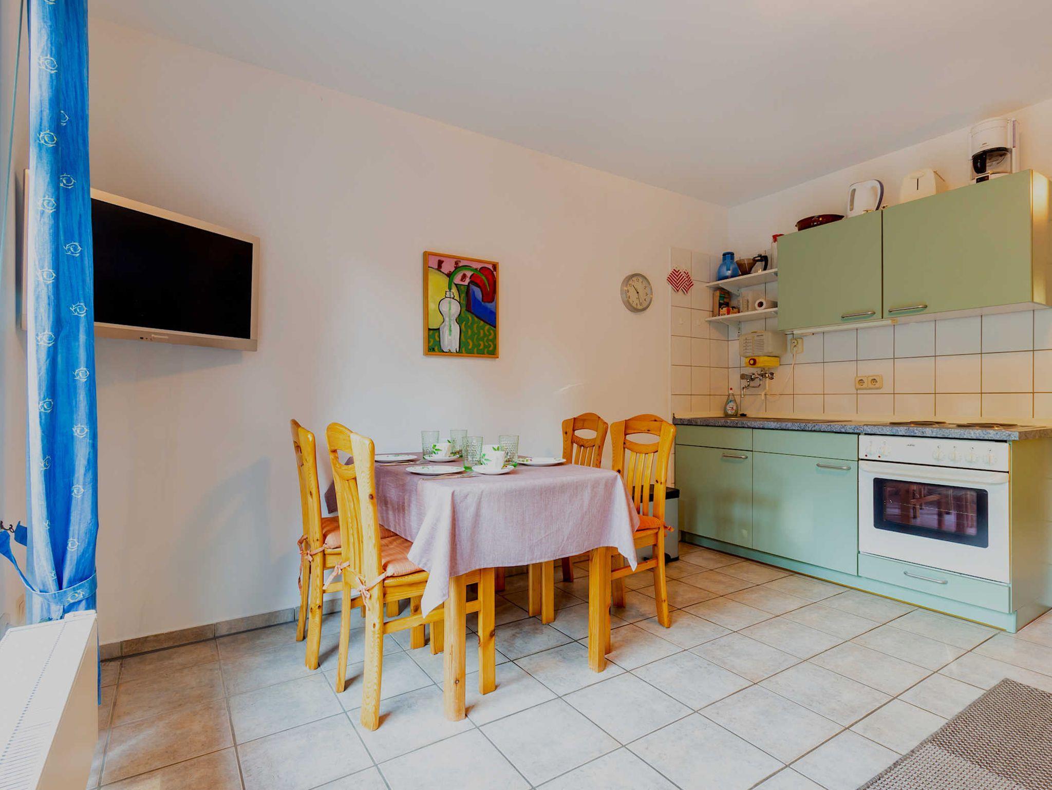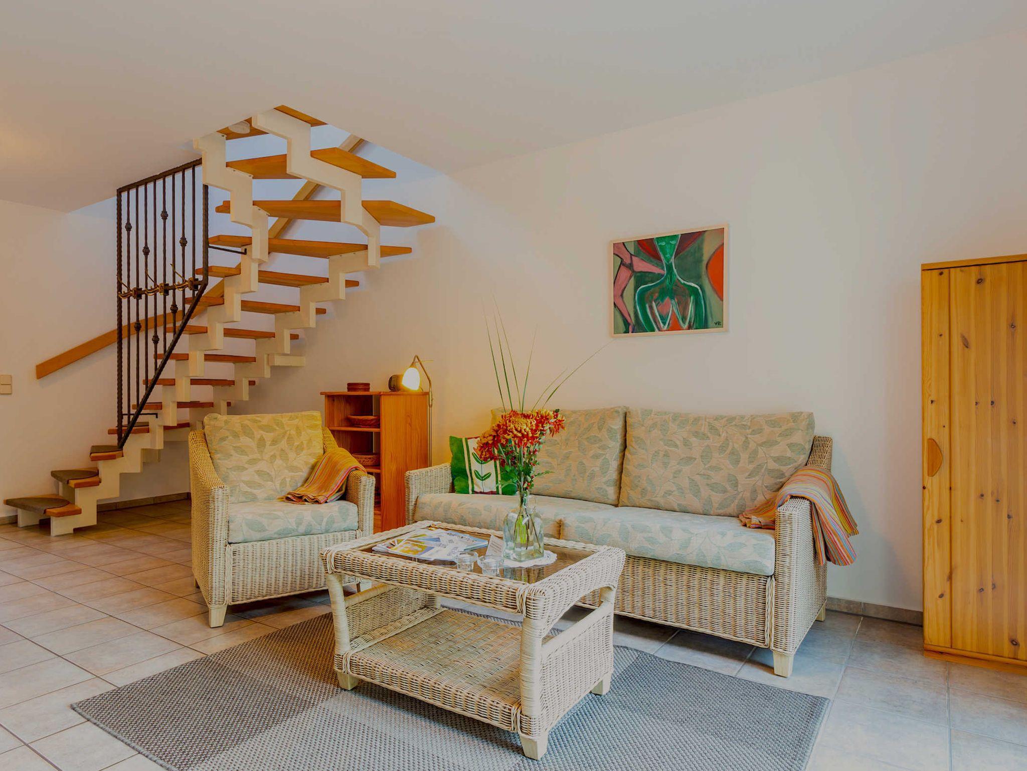Im Ferienhaus des Vermieters befinden sich zwei identisch eingerichtete Ferienwohnungen. Diese haben jeweils eine Größe von ca. 50 qm. Im Erdgeschoss der Wohnung befindet sich jeweils ein Bad mit Dusche/WC, ein großer heller Wohnraum mit komplett ausgestatteter Küchenzeile, einem Essplatz und gemütlicher Sitzecke. Ein Kinderhochstuhl, Fußbodenheizung, Flachbild-TV mit Satellitenempfang und ein kostenloser Internetzugang (DSL) runden die Ausstattung ab.