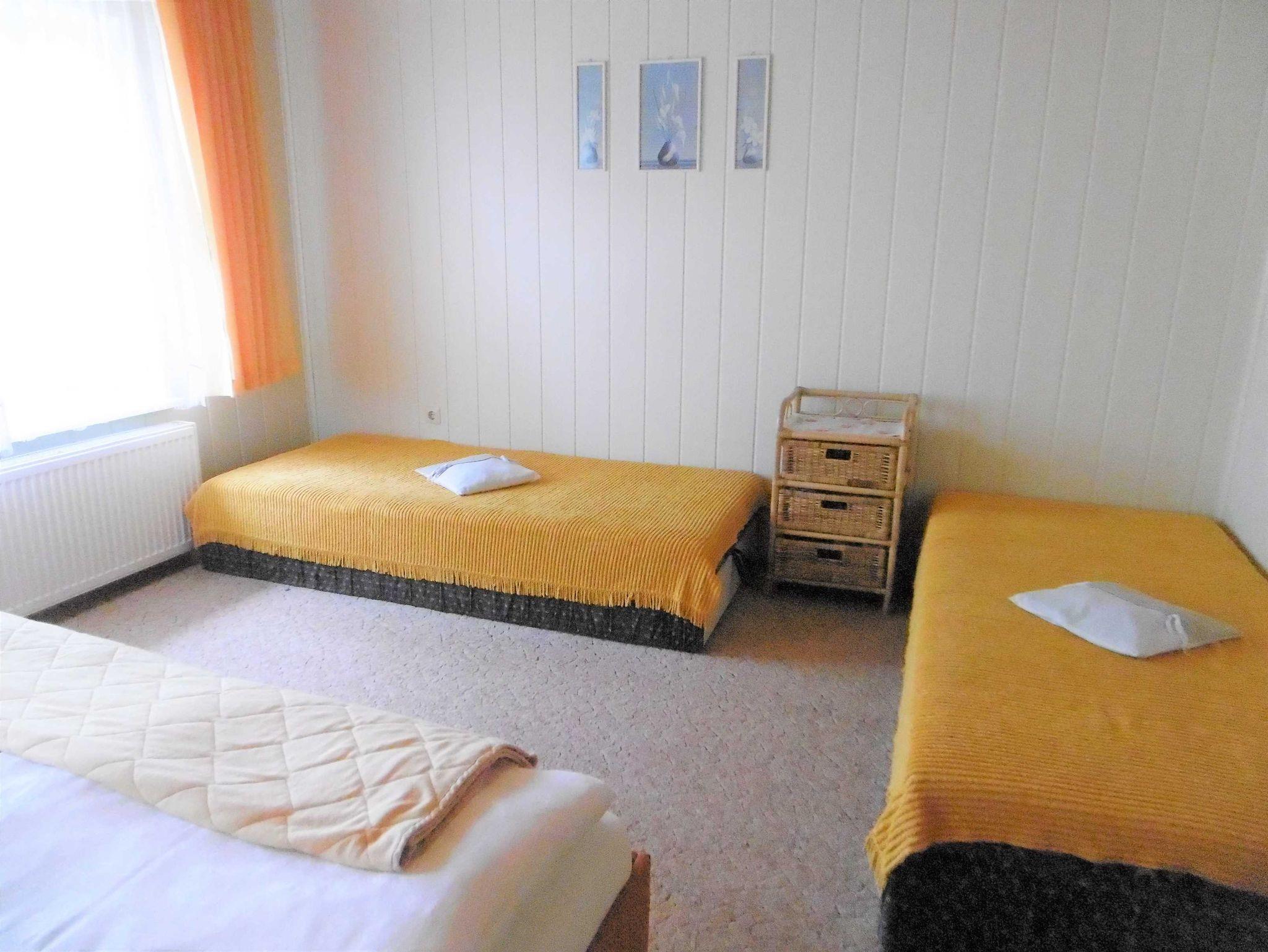 Die gemütlich eingerichtete Ferienwohnung besteht aus einem Wohnzimmer mit Sitzgruppe (im Notfall ist die Coutch ausklappbar) und einem Esstisch, TV . Eine kleine Küche mit allem was dazu gehört steht Ihnen genauso zur Verfügung wie das Duschbad und das Schlafzimmer mit Doppelbetten und zwei Einzelbetten. Auf dem Grundstück haben Sie die Möglichkeit zum Grillen.
