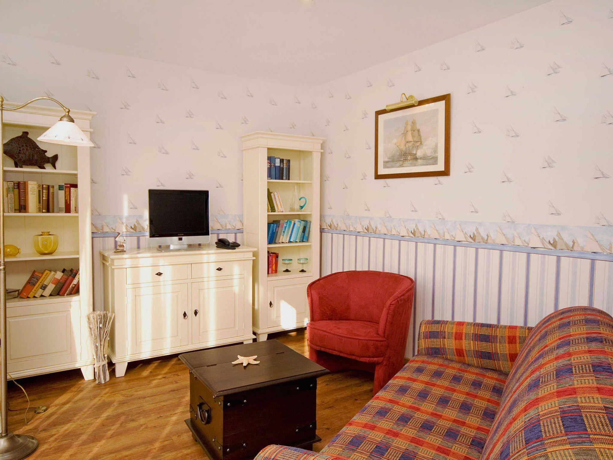 Unsere modern und originell eingerichteten Kapitänssuiten (ca. 38 qm, max. 3 Gäste) sind hell und freundlich, mit Naturholzmöbeln ausgestattet. Sie befinden sich in den separat liegenden Gästehäusern, verfügen über einen eigenen Eingang und eine Sonnenterrasse mit Gartenmöbeln.