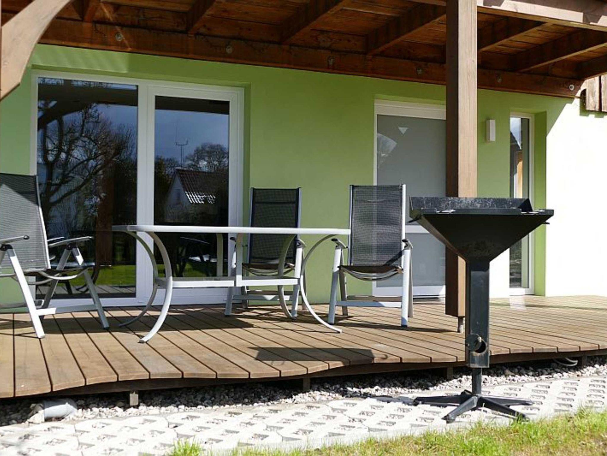 Sehr ruhig und auf unserem Grundstück gelegen, bietet das Ferienhaus alles für erholsame Urlaubstage. Auf der Terrasse können Sie Ihr Frühstück im Freien genießen.