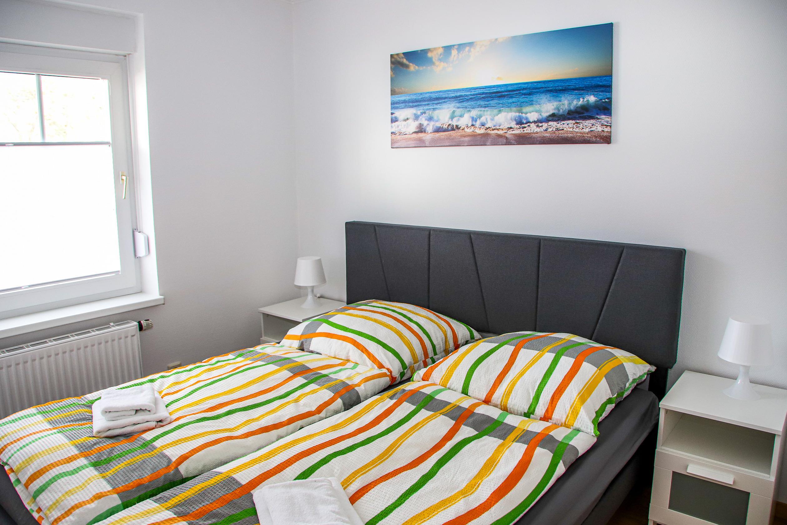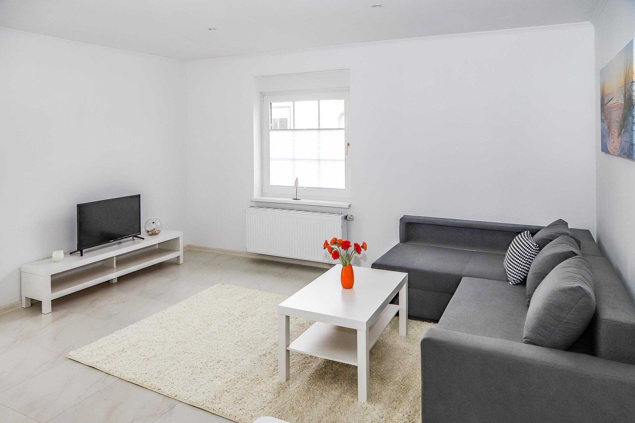 Die neu modernisierte und möblierte Ferienwohnung befindet sich im Erdgeschoss. Sie besteht aus einen Wohnzimmer mit Küche und Esstisch, mit ausklappbarer Schlafcouch, einem Schlafzimmer und einem Duschbad.