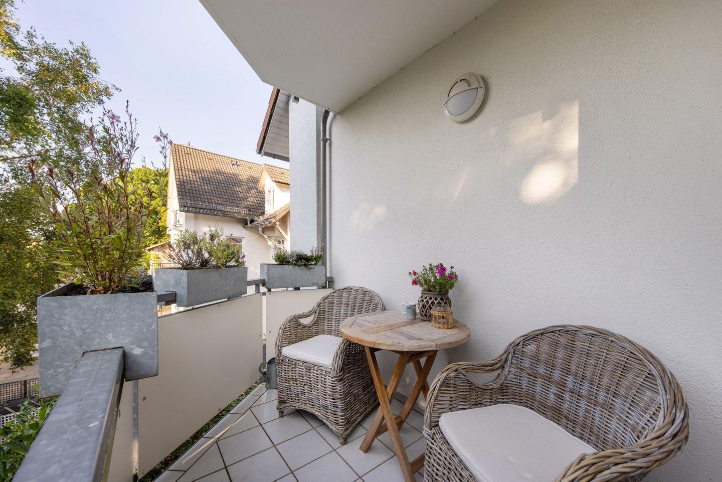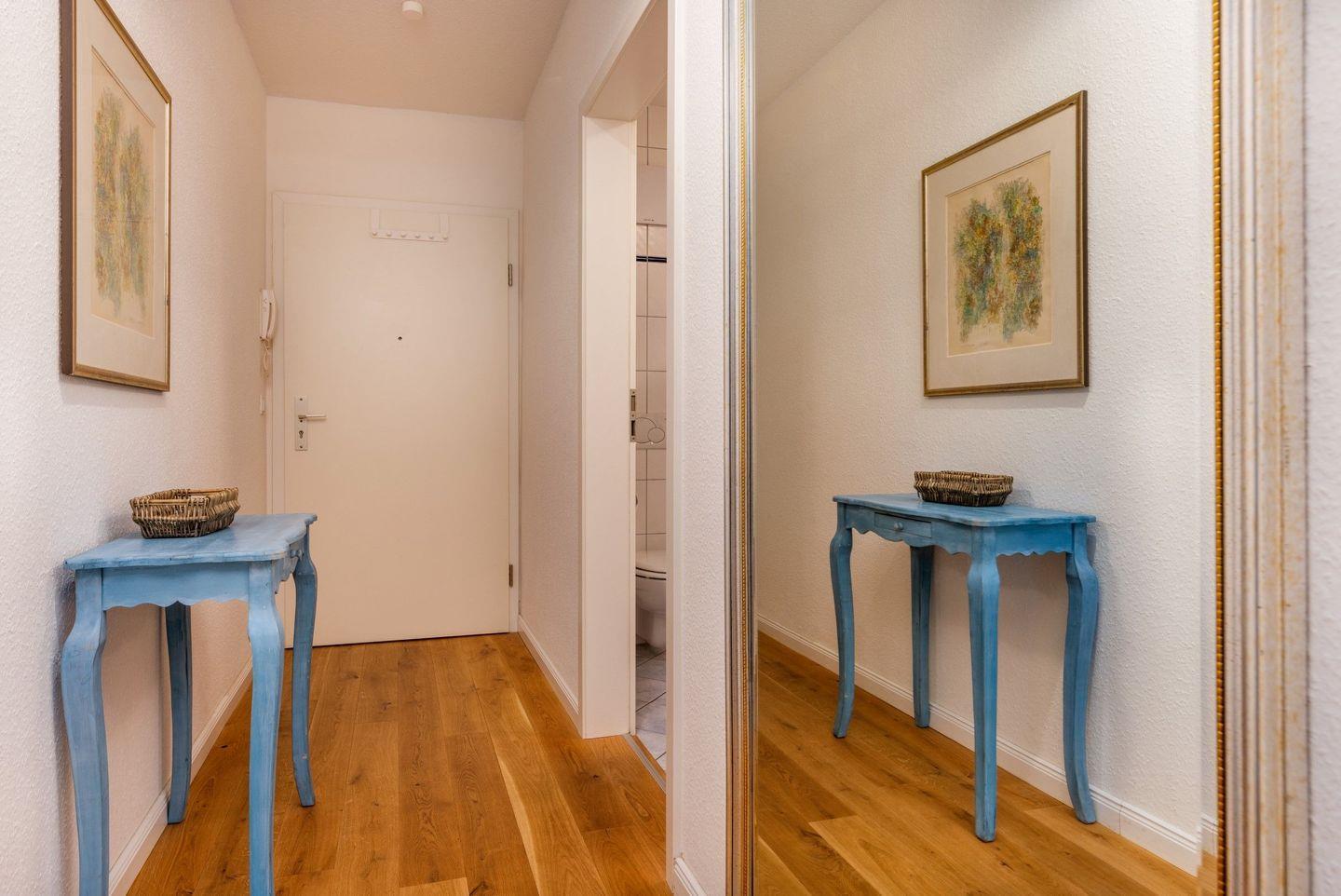 Die Ausstattung ist auf hohen Wohnkomfort und einen entspannten Aufenthalt ausgelegt: Starten Sie Ihren Tag mit einem Frühstück auf dem eigenen Balkon. Ein großzügiger Essbereich mit Esstisch sowie eine offene Küche, die direkt an das Wohnzimmer anschließt, laden zu gemeinsamen Mahlzeiten ein. Die Wohnung ist mit hochwertigen Dielenböden versehen, die für ein warmes und gemütliches Ambiente sorgen. Die moderne Küche verfügt über eine Kochinsel, Backofen, Kühlschrank, Spülmaschine, Kaffeemaschine und Wasserkocher sowie komplettes Koch- und Essgeschirr. Kabel-TV und kostenfreies WLAN sind ebenfalls vorhanden.