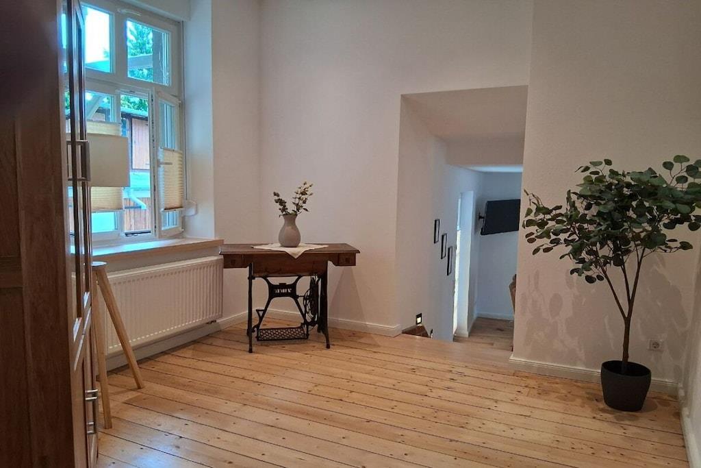 Sjarmerende ferieleilighet Ida i Gernrode: renovert i 2024, 90 m² i ett plan, moderne møblert og sentralt beliggende med utsikt over stiftskirken. Perfekt utgangspunkt for fotturer i Harz-fjellene, besøk til Quedlinburg og smalsporbanen. Inkluderer gratis adgang til klokkemuseet.