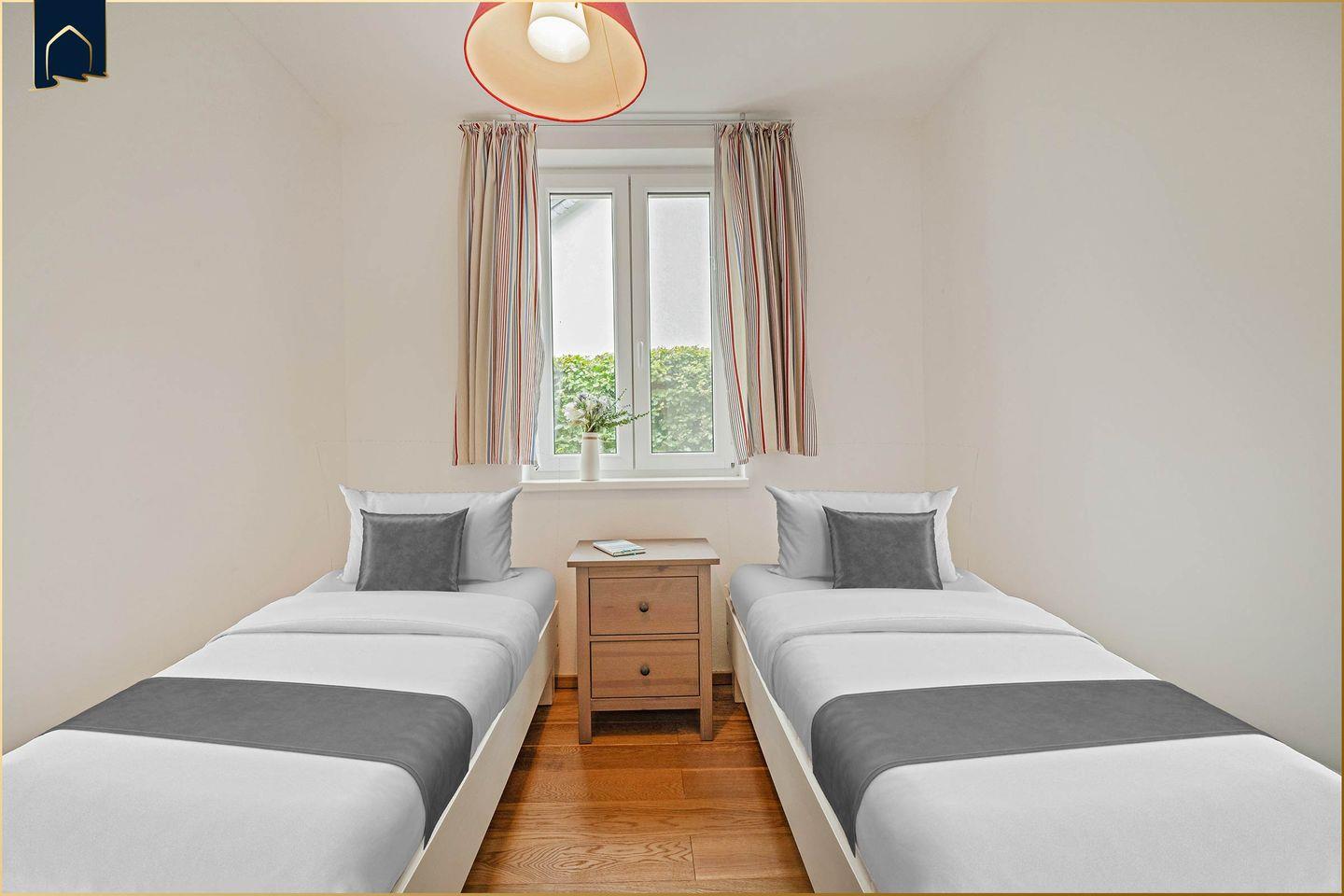 Das Ferienhaus bietet drei geschmackvoll eingerichtete Schlafzimmer mit bequemen Betten, Stauraum und viel Tageslicht. Zwei moderne Badezimmer mit Dusche, Waschbecken, Haartrockner und Kosmetikspiegel sorgen für Komfort am Morgen und Abend. Zusätzlich steht ein Gäste-WC zur Verfügung. Für längere Aufenthalte besonders praktisch: Eine Waschmaschine, Wäscheständer, Staubsauger sowie Bügelbrett und Bügeleisen stehen bereit. Auch für Familien ist das Haus bestens geeignet – Kinder sind herzlich willkommen!