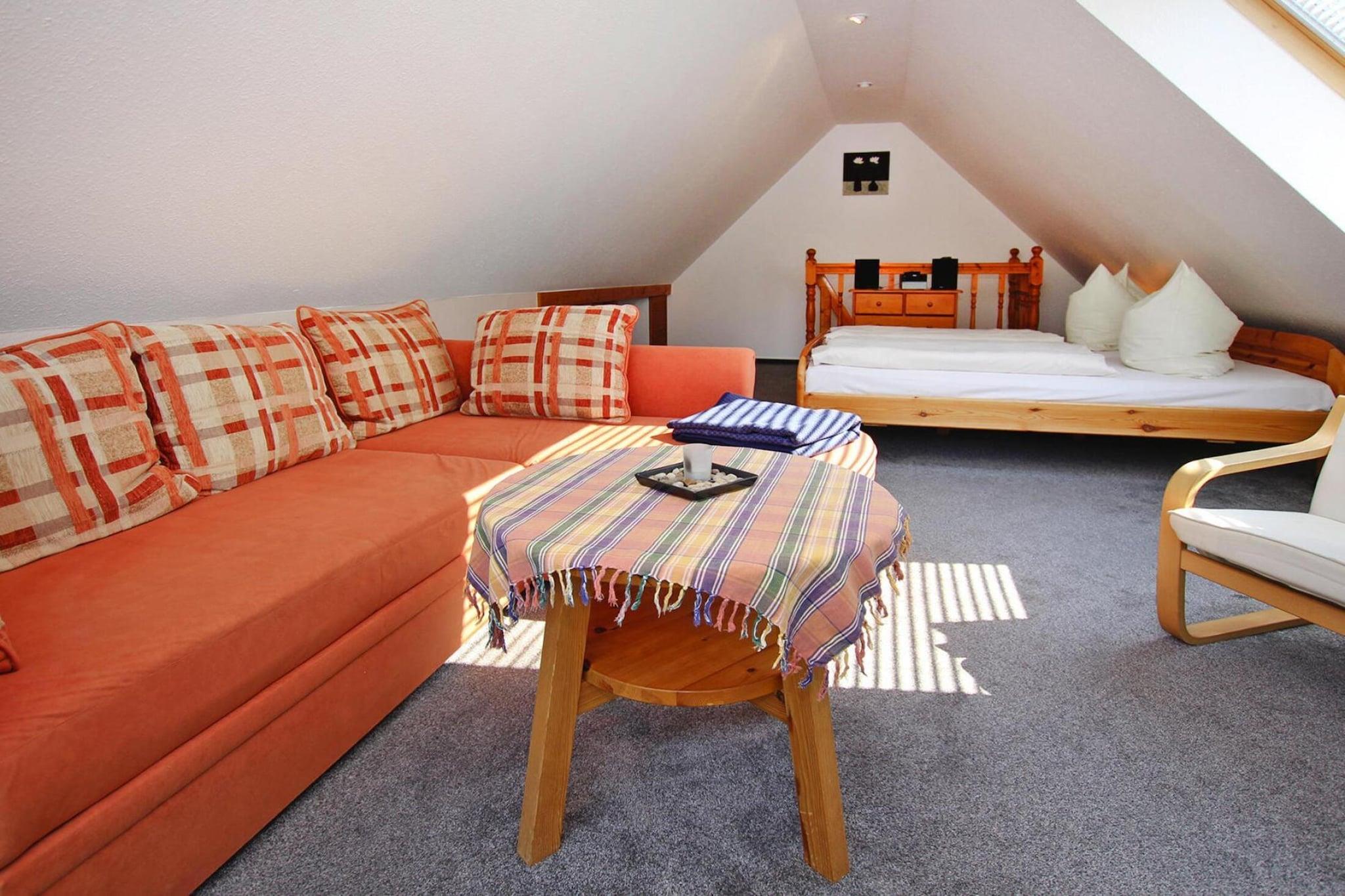 Koselig samvær direkte på Müritz: Koselig ferieleilighet med WiFi i øverste etasje, kun 100 meter fra Müritz med en liten badeplass. Den delte balkongen byr på en vakker utsikt over innsjøen og den nærliggende båtutleien tilbyr de beste forutsetningene for en avslappende båttur på den største innsjøen i Mecklenburg Lake District. Ved fiskerbrygga i Müritz har du muligheten til å nyte fersk fisk fra regionen eller et deilig fiskesandwich. Den pittoreske byen Röbel med sine fargerike bindingsverkshus er ikke bare et paradis for alle vannvandrere, fiskere og havfruer, men også et anerkjent feriested. Freden og roen i det vakre naturlandskapet på Müritz er en oase for de som er stresset i storbyen. Restauranter, kafeer, torget og termalbadene i Müritz tilbyr mye variasjon. Detaljer: WiFi Aktiviteter i nærheten: Müritz-regionen tilbyr ikke bare mange severdigheter og småbyer, men også mange vannsporter som seiling, surfing, roing og fiske, samt imponerende turer på utfluktsdampbåtene til Weisse Flotte. Eller sykle gjennom skog- og innsjøområdet i Mecklenburg Lake District, forlat gamle gater eller se havørn eller fiskeørn, bever og til og med glitrende isfugl. Kikkert bør være din faste følgesvenn. Müritz nasjonalpark med mer enn 600 km med sykkel- og turstier er også lett tilgjengelig fra Röbel. Ved å integrere byen i skipstrafikken til Müritz nasjonalpark-billett, er det til og med mulig å gå til Waren eller til Bolter-kanalen på sykkel Ikke egnet for personer med redusert mobilitet