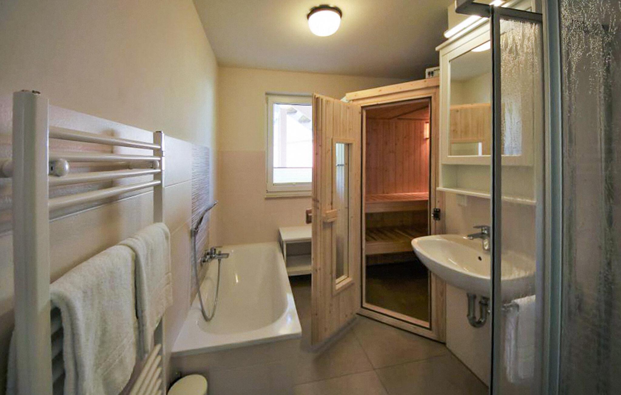 Velkommen til den innbydende leiligheten, som venter på deg i nærheten av innsjøen og tilbyr deg de ideelle omgivelsene for en avslappende ferie. Nyt en herlig tid i de koselige rommene. Se frem til hyggelige kvelder med felles måltider og slå dere ned i sofaen i stuen, hvor dere kan prate lenge.